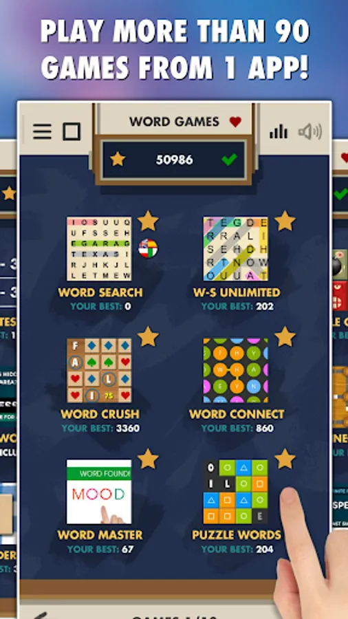 Play 100 word search, spelling, guessing, educational, puzzle and casual games from a single app!