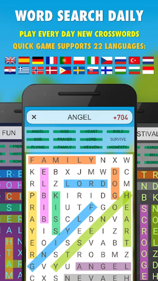 Word Search Daily contains already more than 1850 different word categories such as Football Legends, Celebrities, Best Hockey Players, Music, Cars and many others!