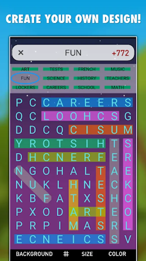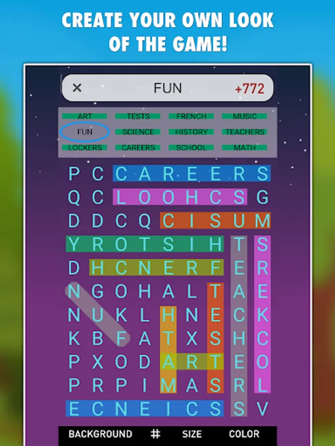 Word Search Daily is fully customizable - you can change a game background, size and color of the letters, show/hide the grid and setup some extra customization settings!