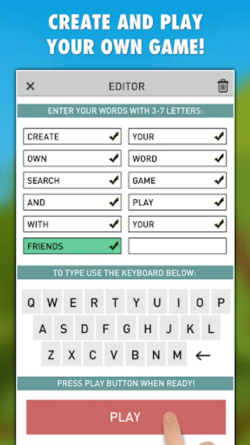 Want to play with your own words? Tap on an Editor and enter your own words you will play with!
