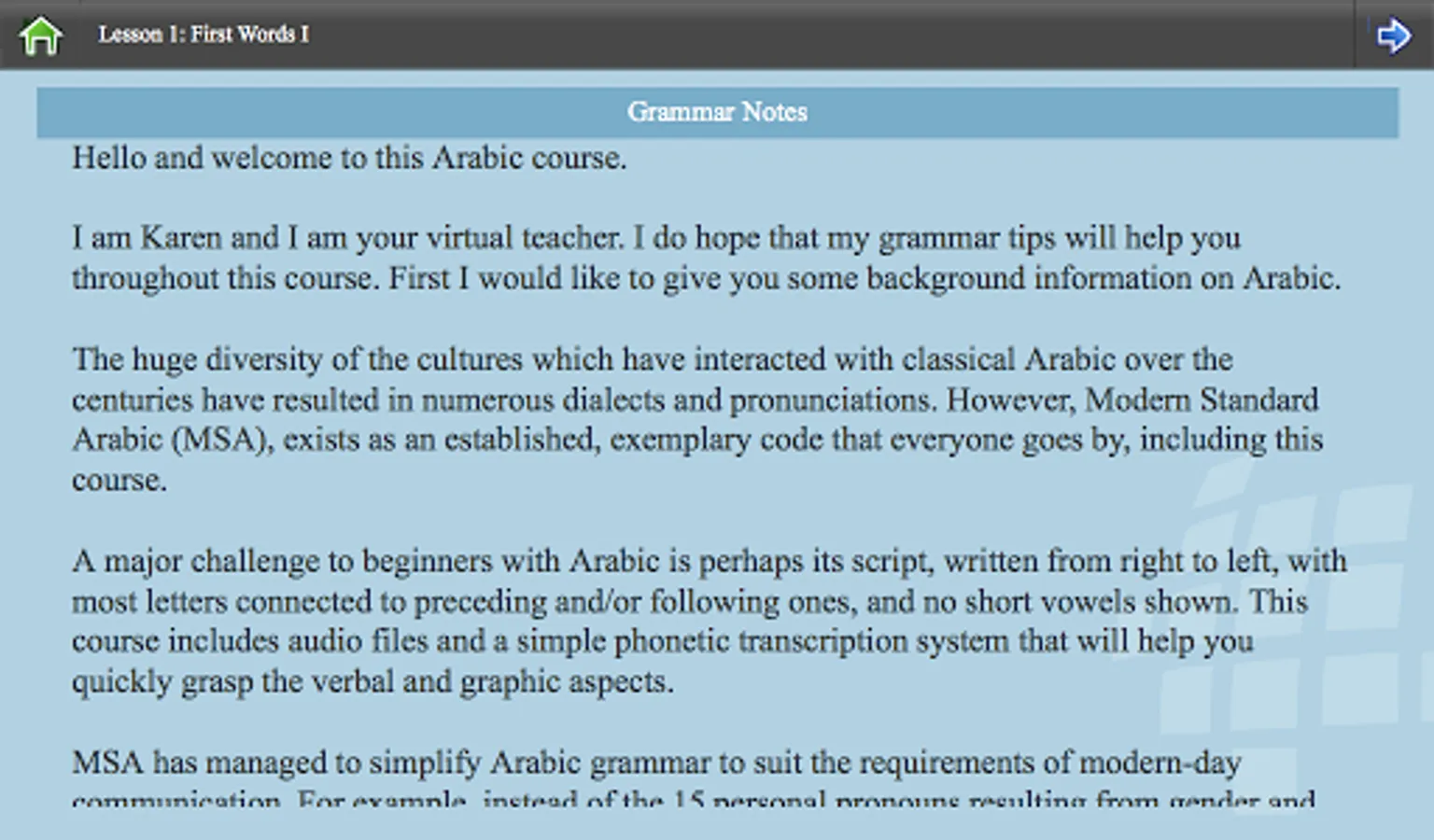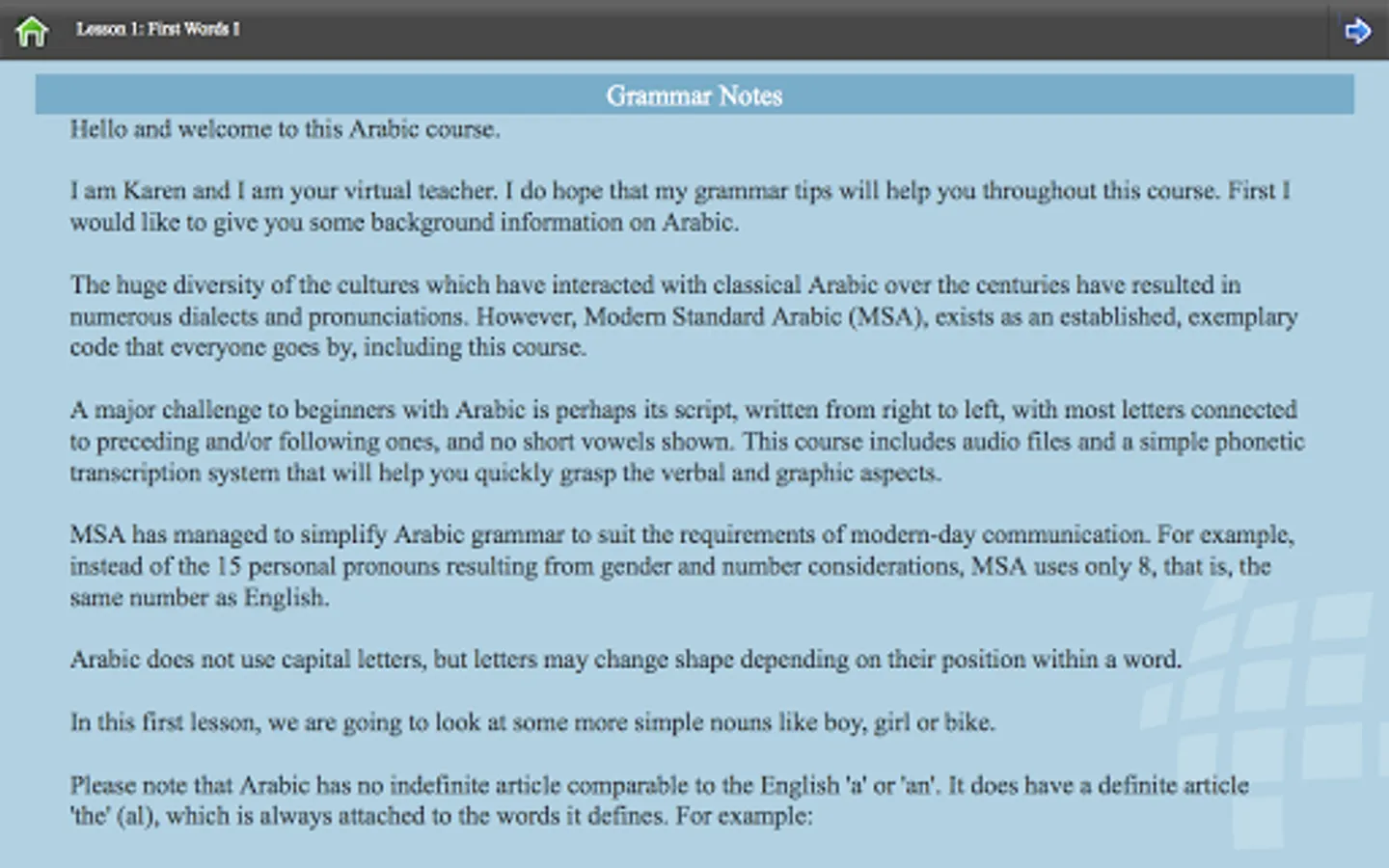 Our Arabic 65 lessons (available in full version) cover the following: