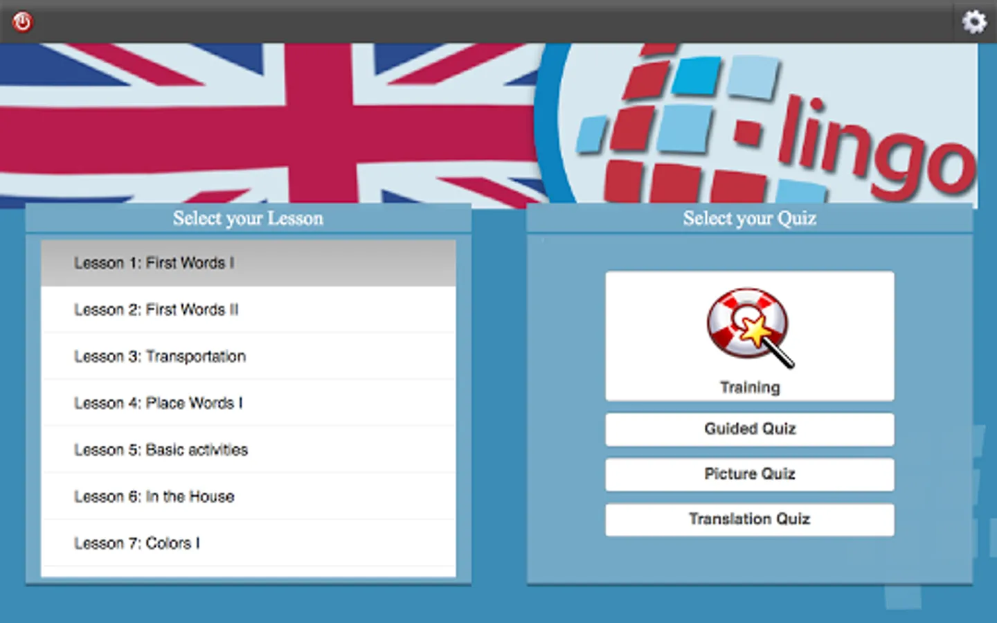 L-Lingo is designed to be easy to use. It exploits multimedia channels - words, recordings of native speech, and pictures - to enable you to grasp English words and phrases useful on the road, when mingling with English speakers, in day-to-day or family life, and when working.