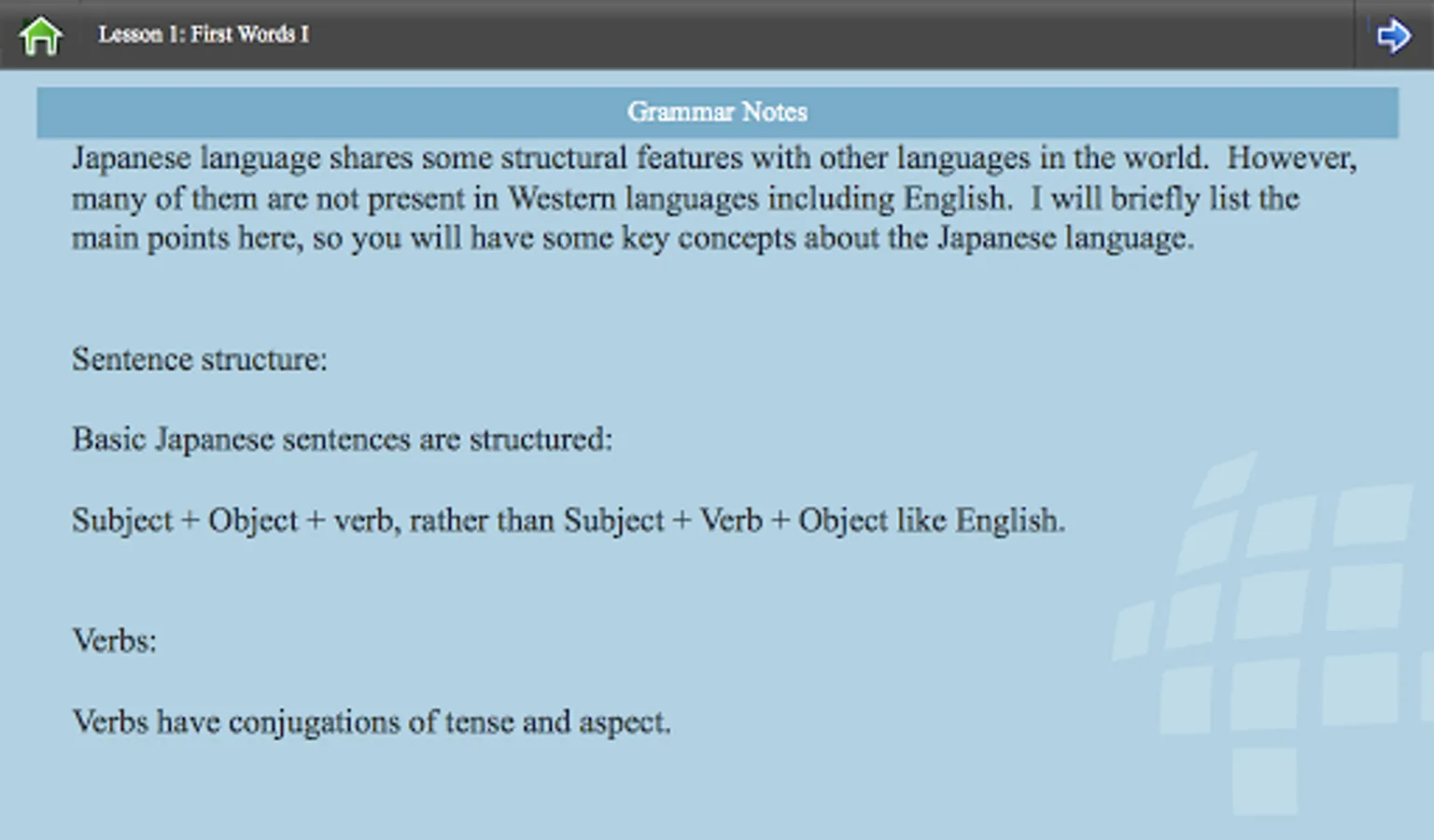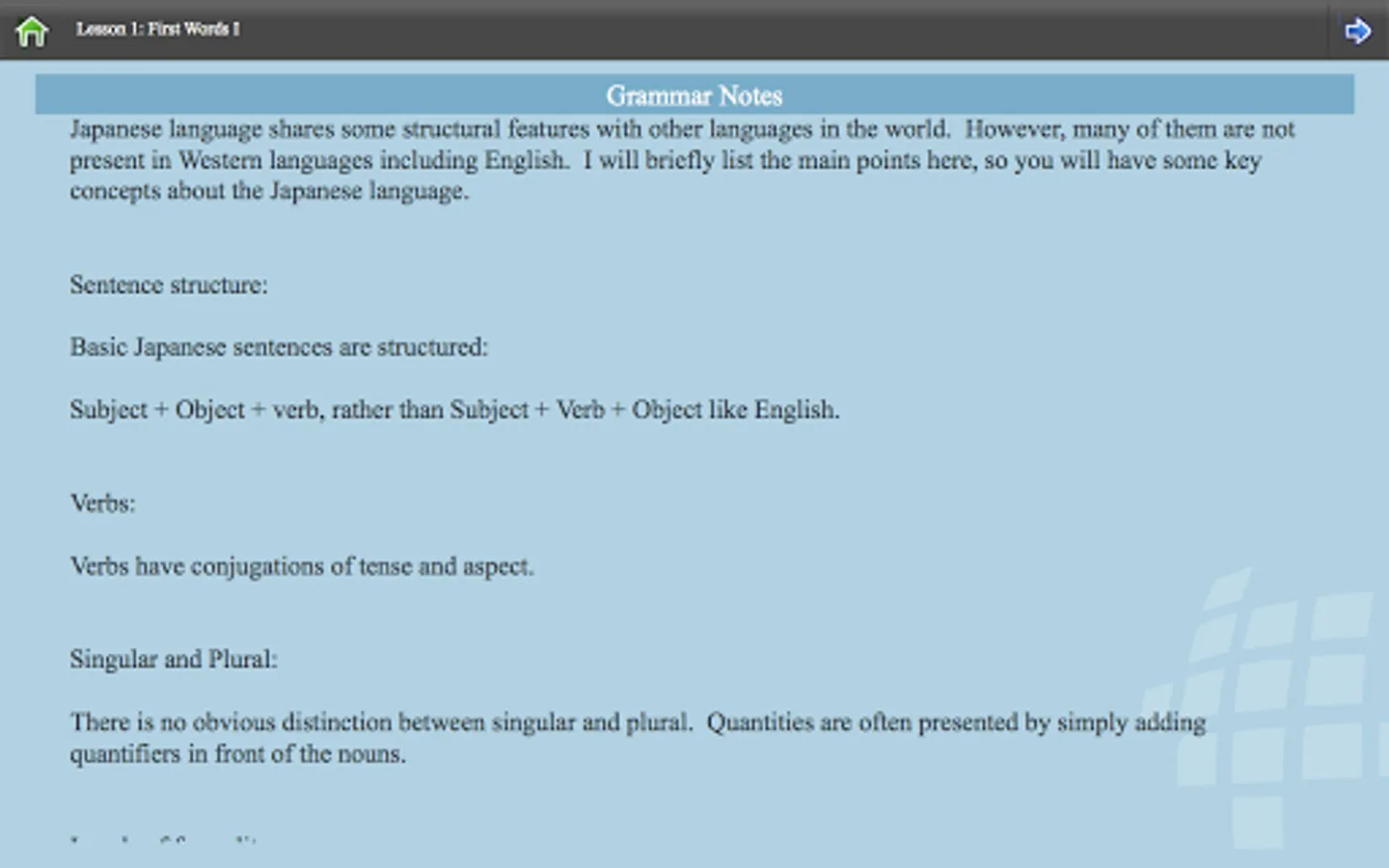 Our Japanese 65 lessons (available in full version) cover the following: