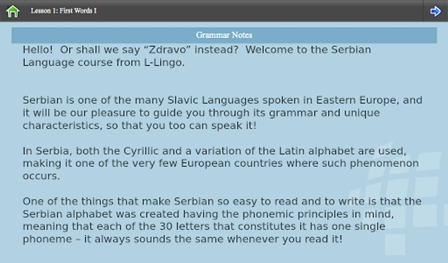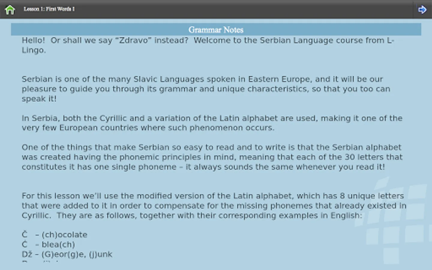 L-Lingo immerses you in the sights and sounds of the Serbian language, rather than just the written word.
