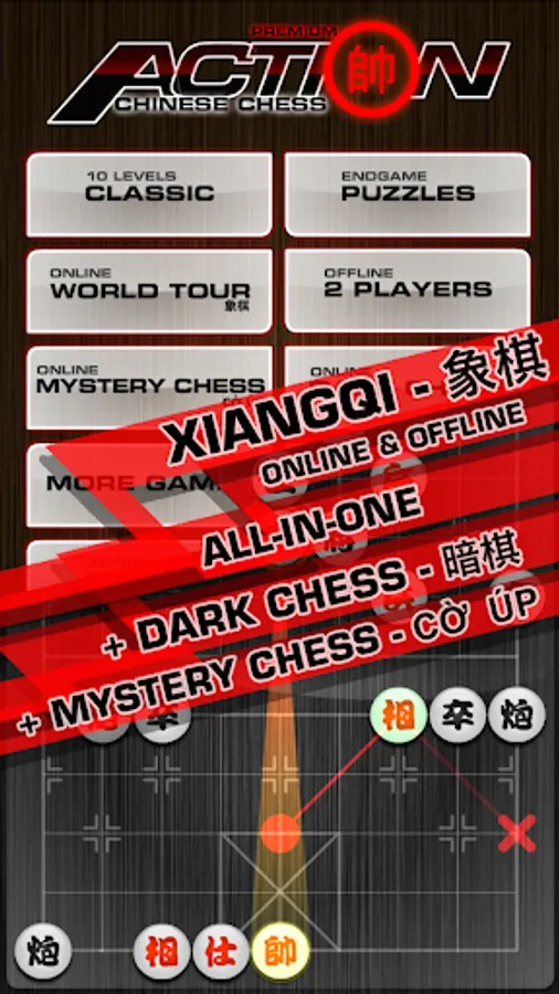 Action Chinese Chess aka Co Tuong or Xiangqi offers a fun gameplay experience with amazing graphics, smart computer and awesome features.