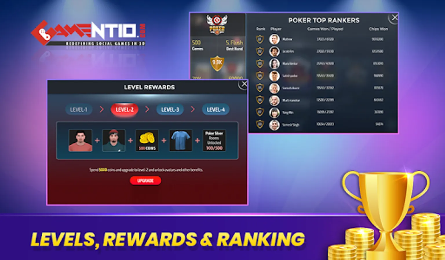 Gamentio is the first of its kind 3D online card game platform which combines multiple casino games simulation in one free App: