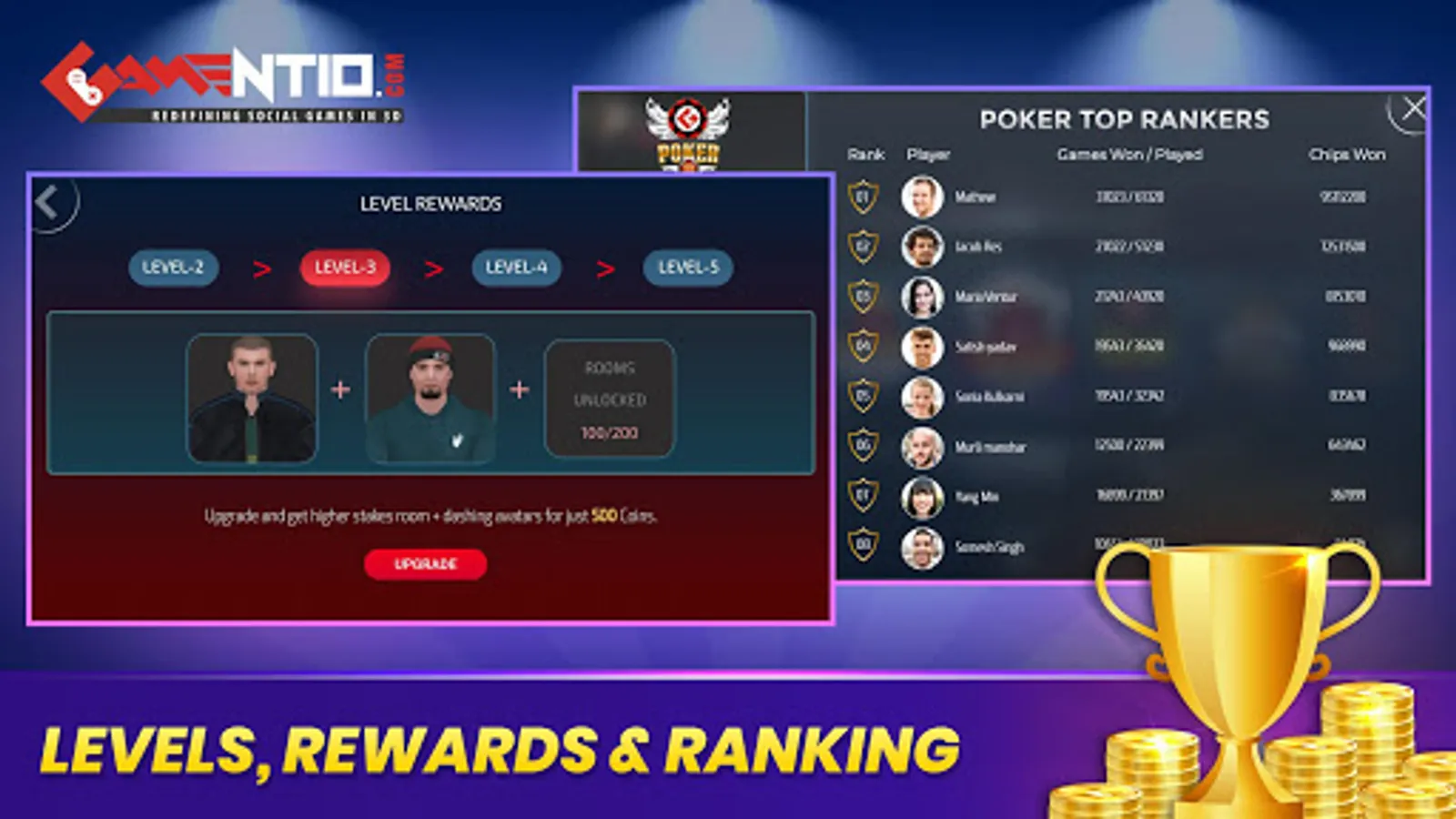 Tournament Fun: Daily Poker, Rummy & 3 Patti Tournaments. Play tourneys by virtual currency and socialize in a new, fun way.