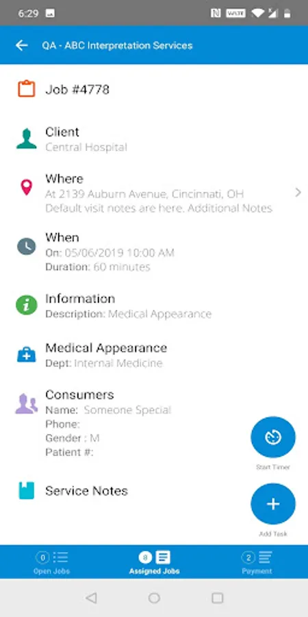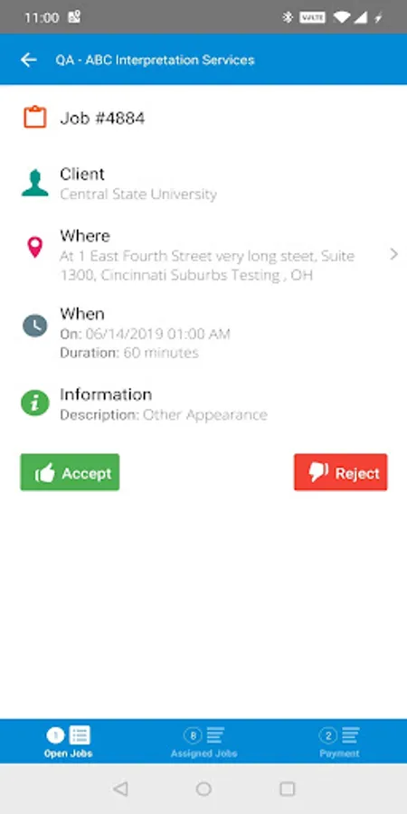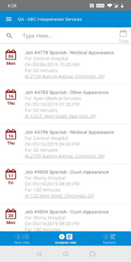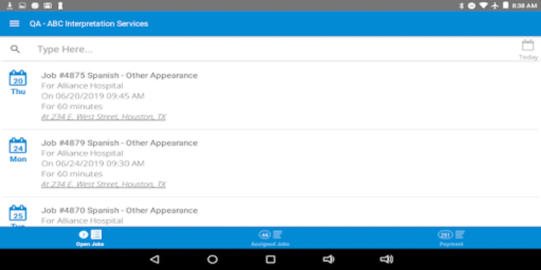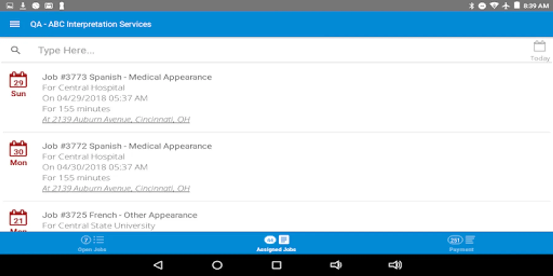 The Atrium mobile application provides interpreters with the information needed to be sure they do not miss an appointment and that their time sheets are submitted quickly, accurately and already approved by the client. Not only do the interpreters have all of the relevant information about the appointment at their fingertips, they even have a map for the location.