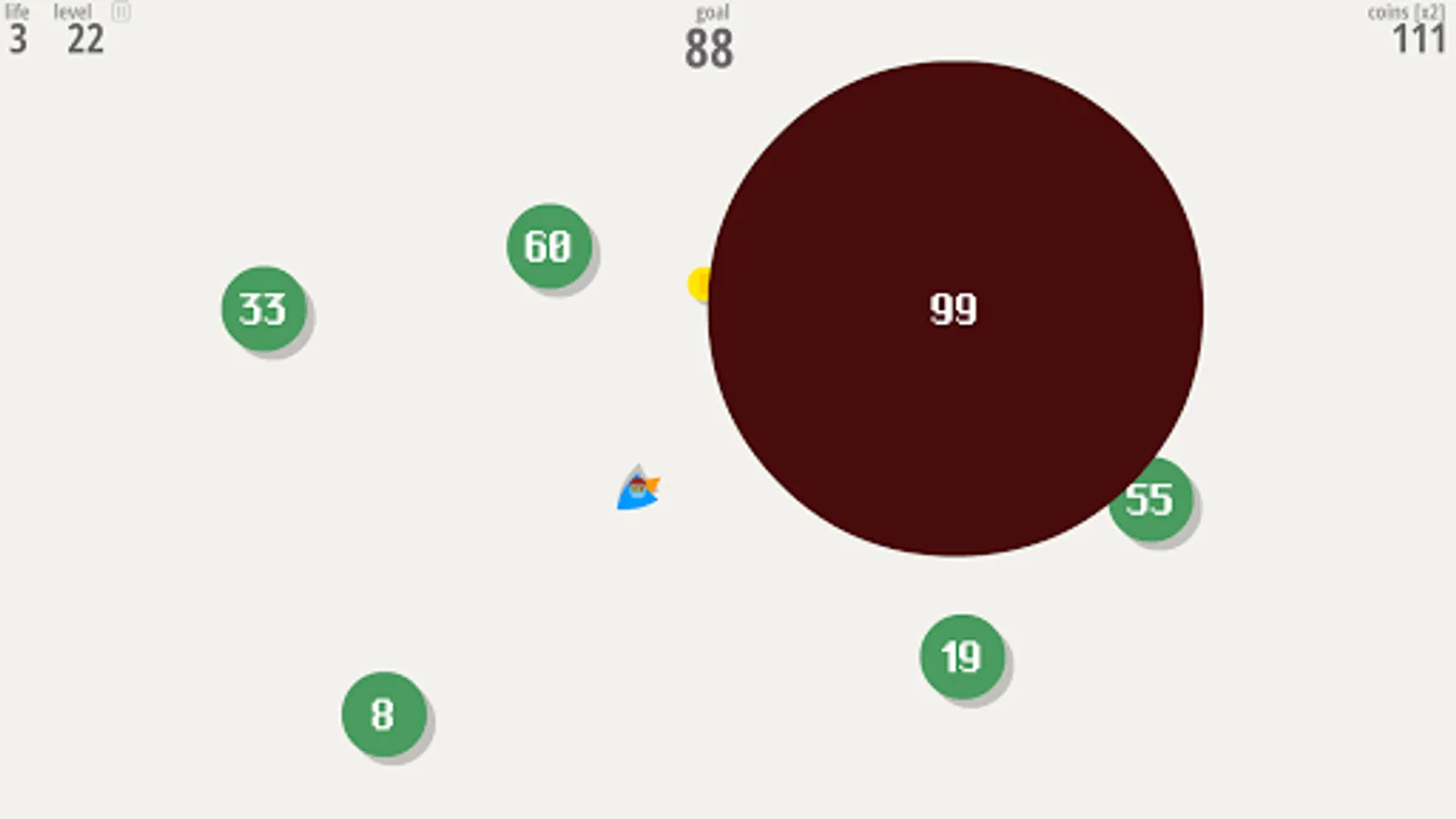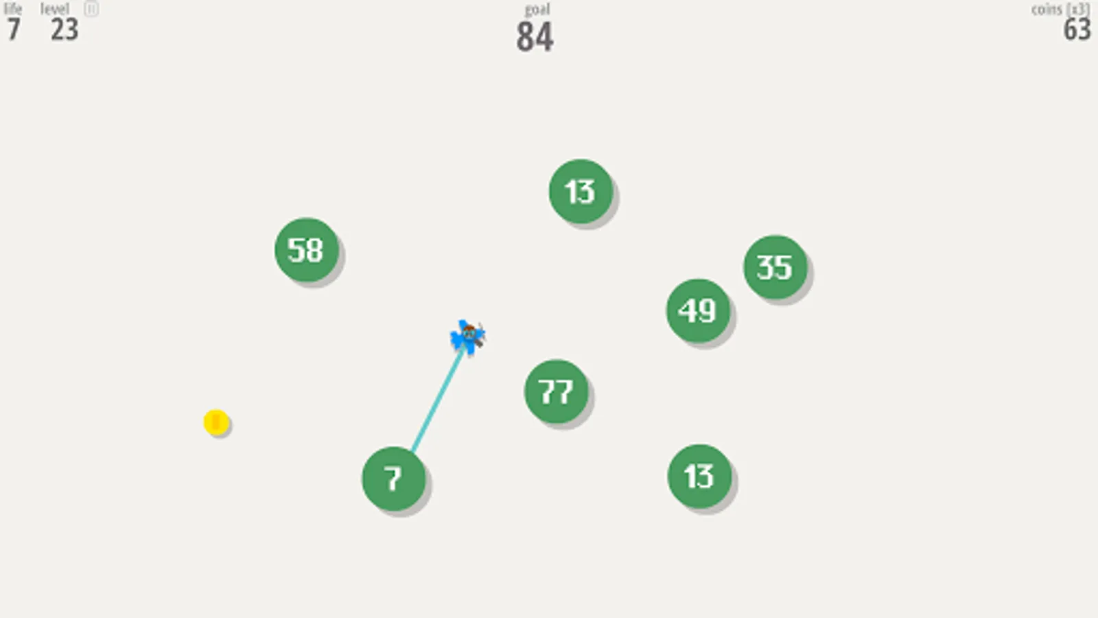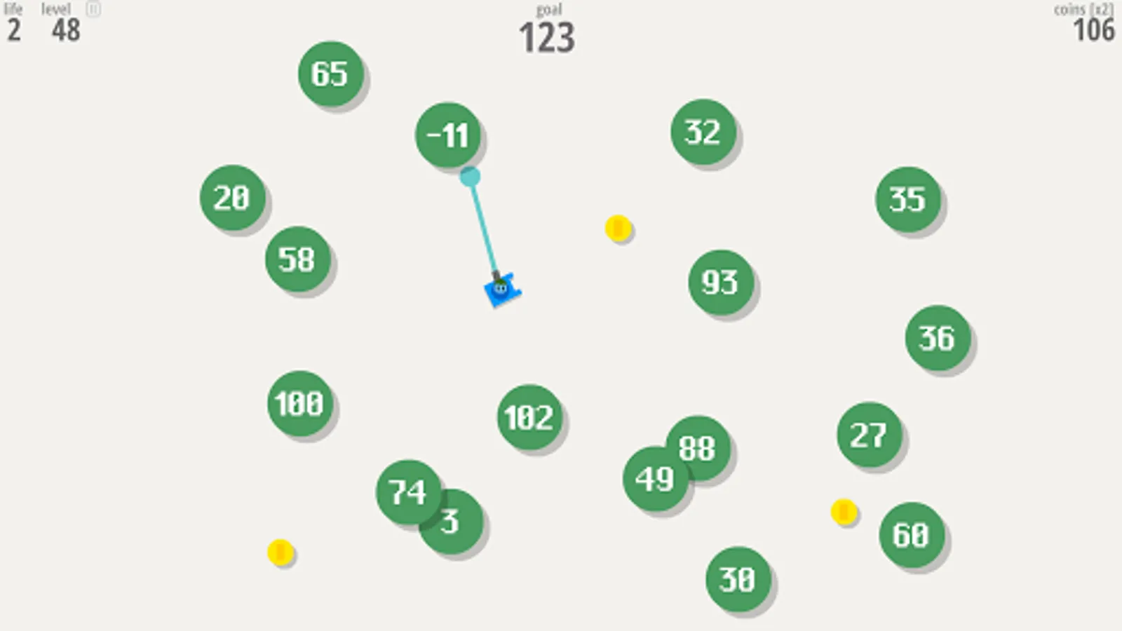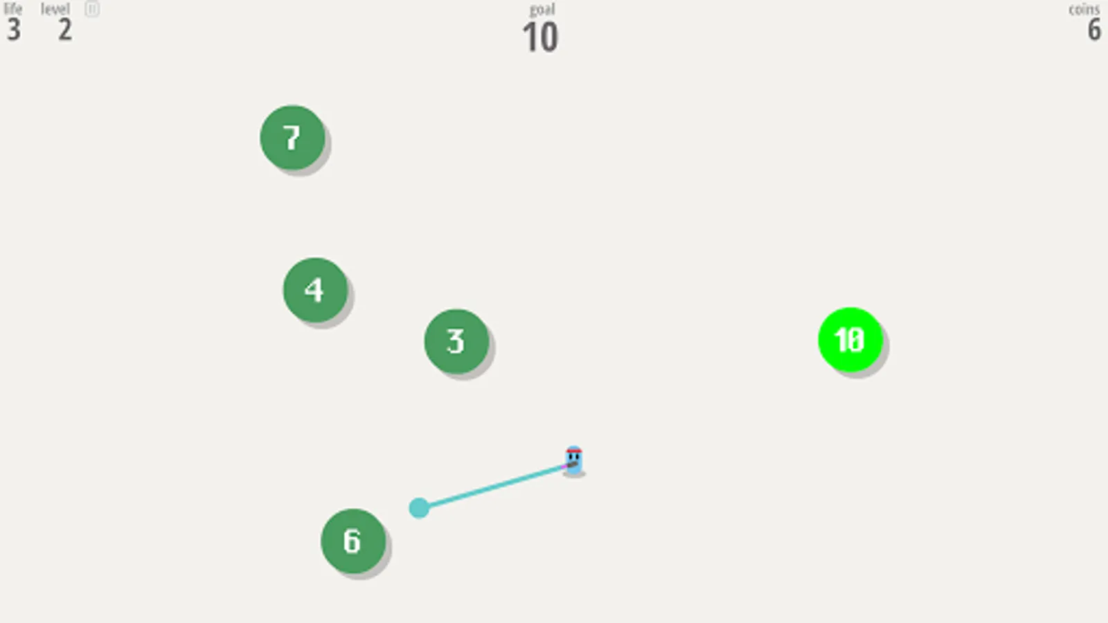 Each level is made of bubbles floating around. Each bubble holds a number. You play as a "Smasher", a soldier equipped with a grappling hook. Using this weapon, you’ll have to smash bubbles together: their numbers will then add up. Smash bubbles so their numbers match the goal number displayed on top of the screen to earn points! But beware, if your soldier get hit by a bubble, he’ll explode!