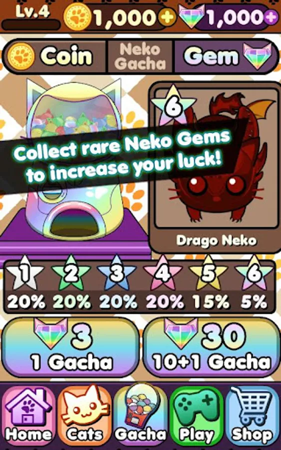 ★ Use Neko Coins in the Gacha Machine, or Neko gems for better luck!