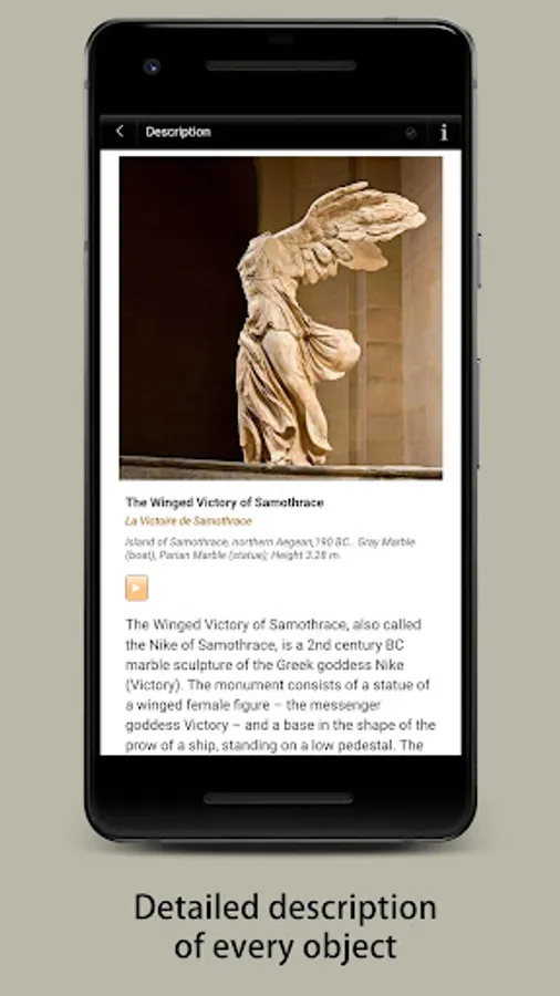 ** Built-in audio guide for 900 artifacts and paintings with descriptions **