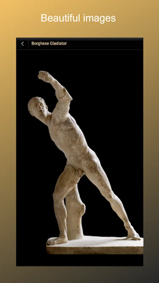 - Roman sculptures: Borghese gladiator, Borghese vase, Michelangelo's slaves
