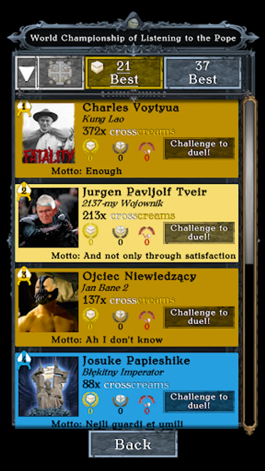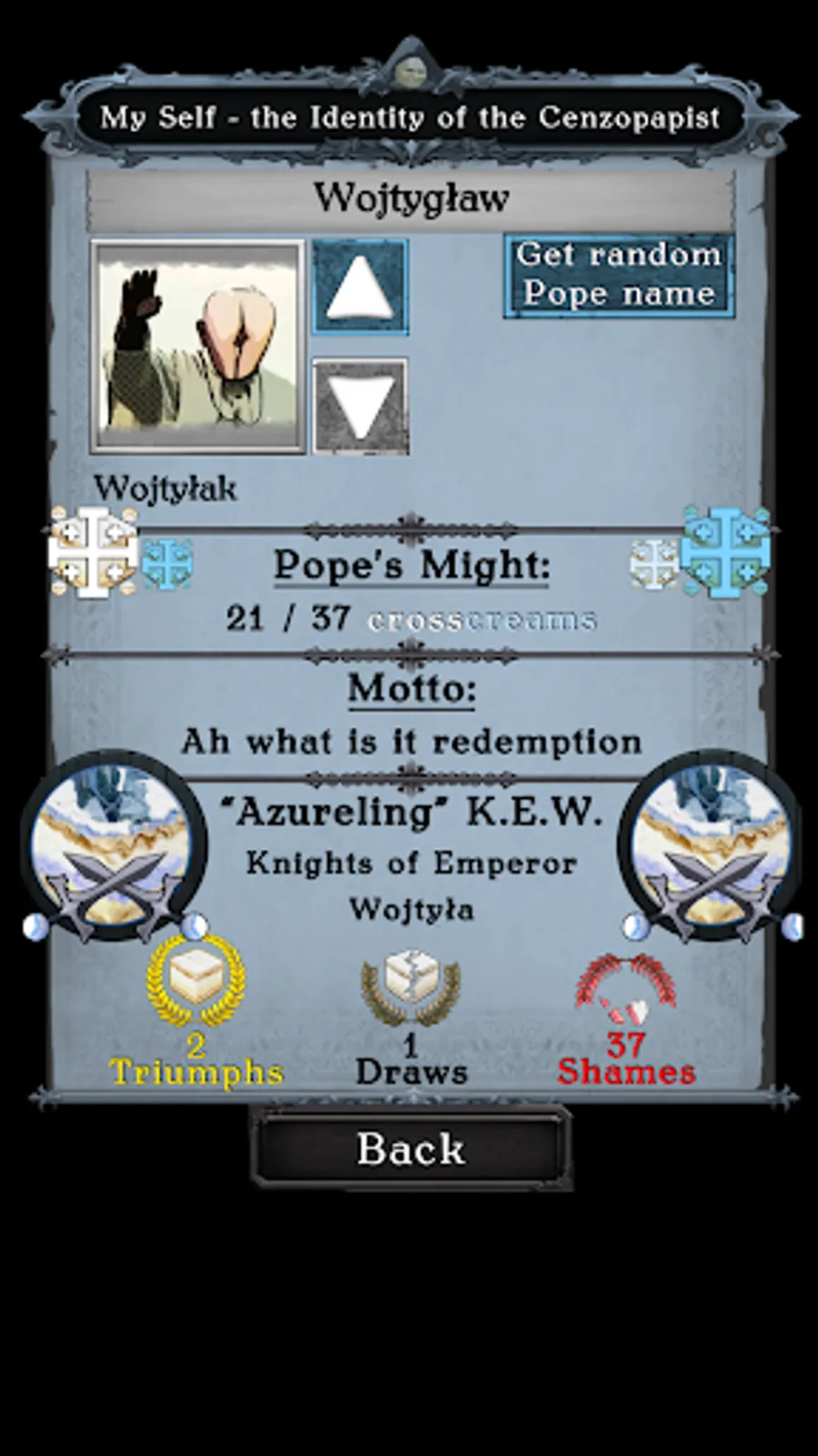 NOVELTY! Climb the Ranking of twenty-one or thirty-seven Censopapists with your unique nickname, motto and portrait!