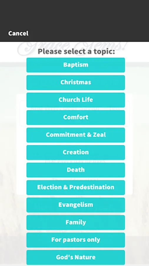 This devotional app contains the excellent collection of devotional writings from gracegems.org. These choice writings range from many timeless authors such as C.H. Spurgeon, A.W. Pink, John Newton, Martin Luther, Octavius Winslow, George Everard and many more!