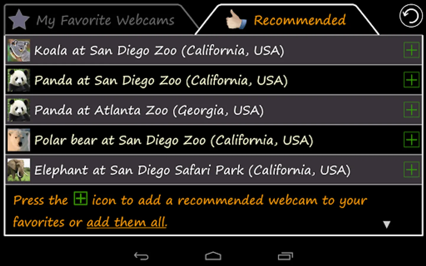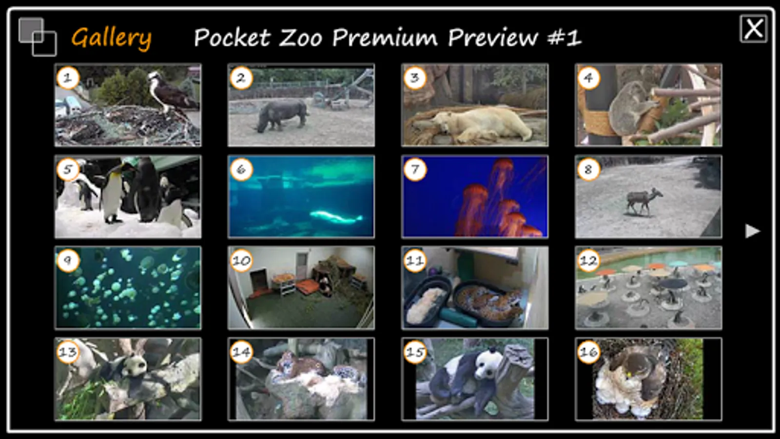 Pocket Zoo Full has no time limitations and gives you full access to all webcams and videos at all times (if available).