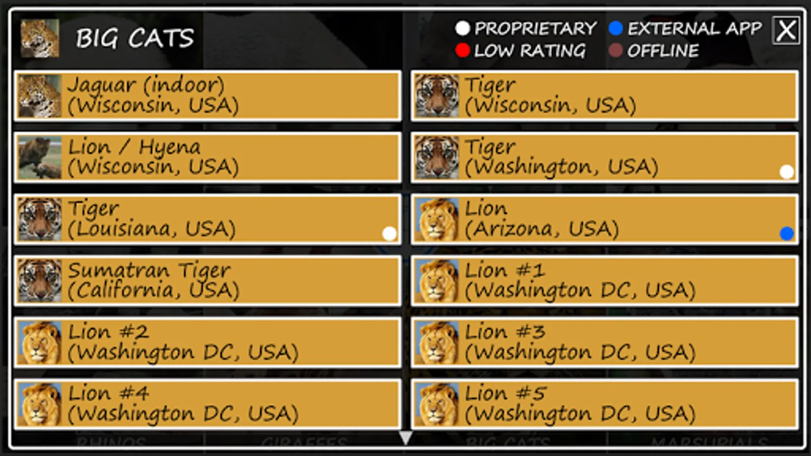Pocket Zoo Full connects you to hundreds of animal webcams in zoos, aquariums, and natural reserves located all around the world.