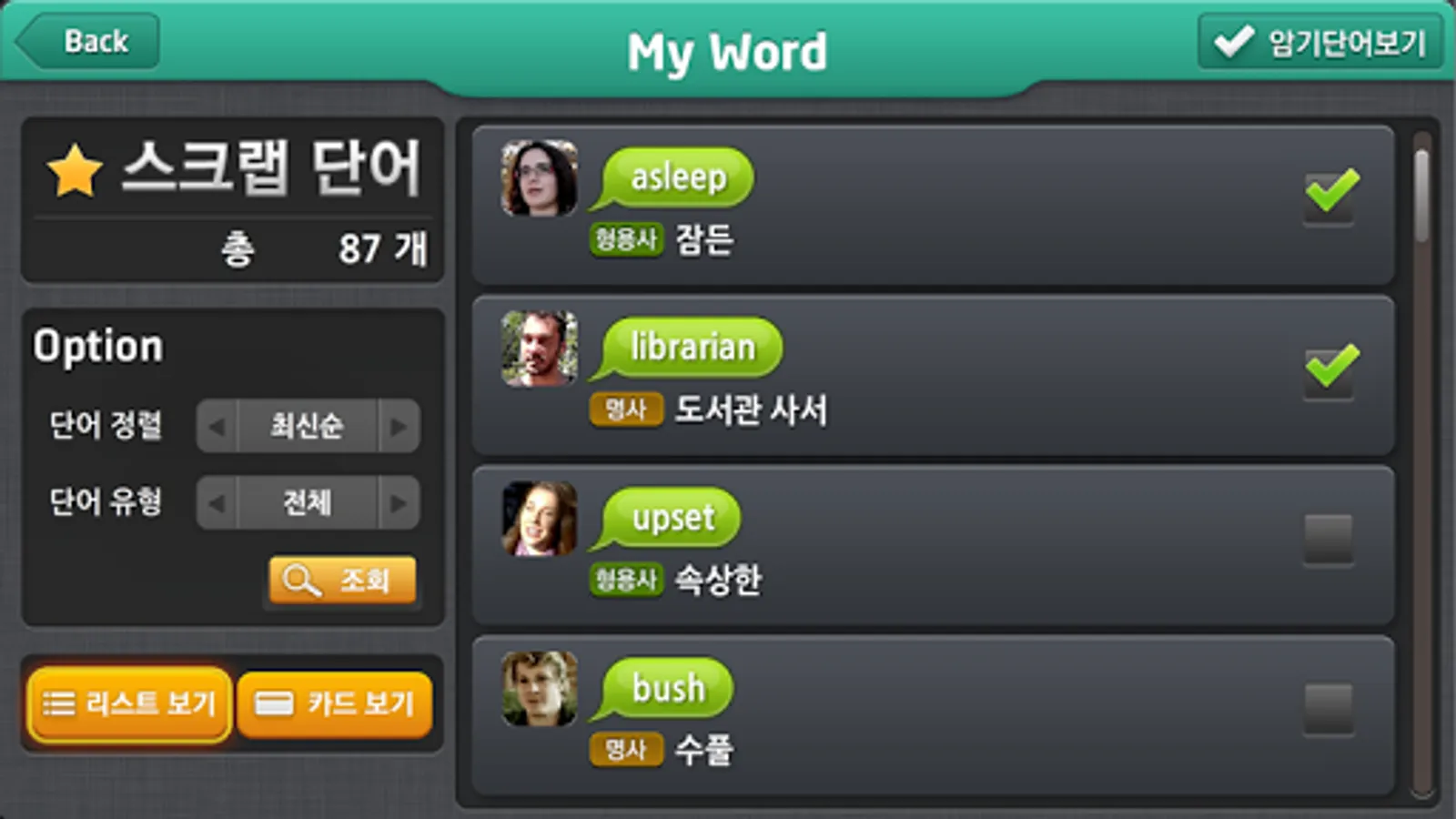 In addition, through the word scrap function, you can create your own vocabulary book to see words that require additional learning at a glance, and you can review them effectively at any time through example videos.