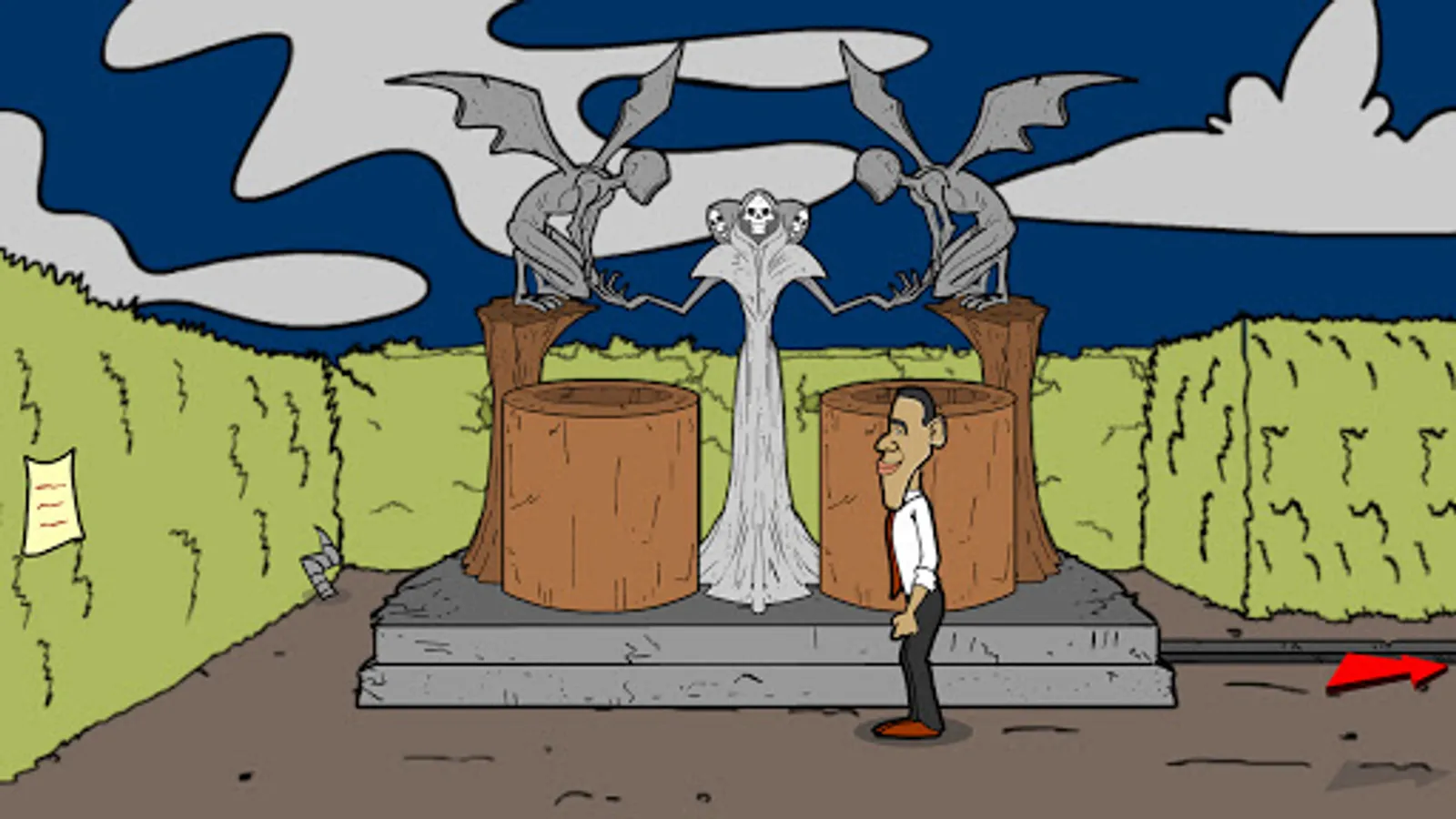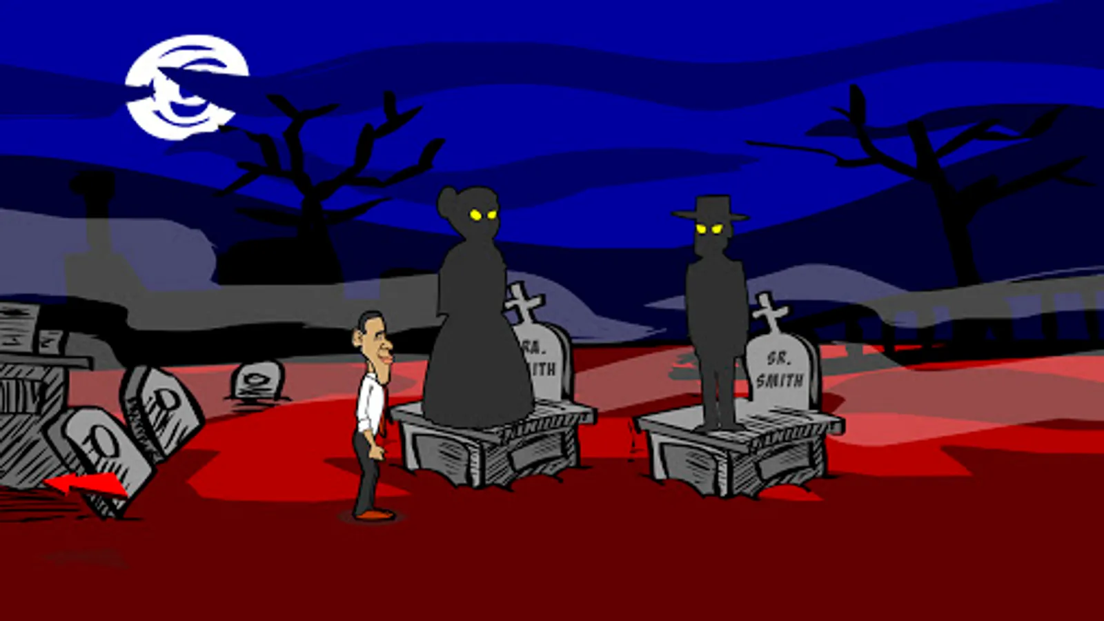Obama has to fight against dark forces in a haunted cemetery, where a very powerful evil presence lurks. Help him solve this mystery safe and sound!