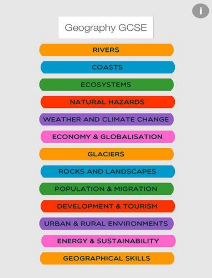 Geography GCSE revision games covers topics that are common across AQA, Edexcel and OCR specifications.