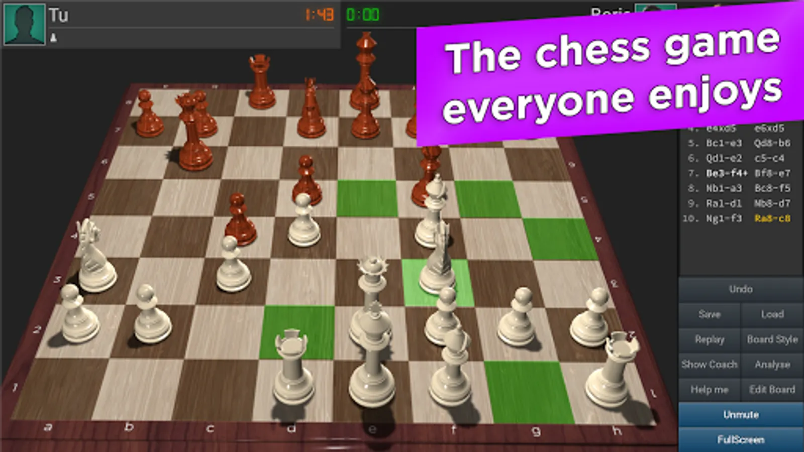 * Choose from different boards: 2D, 3D and a stunning fantasy chess set.