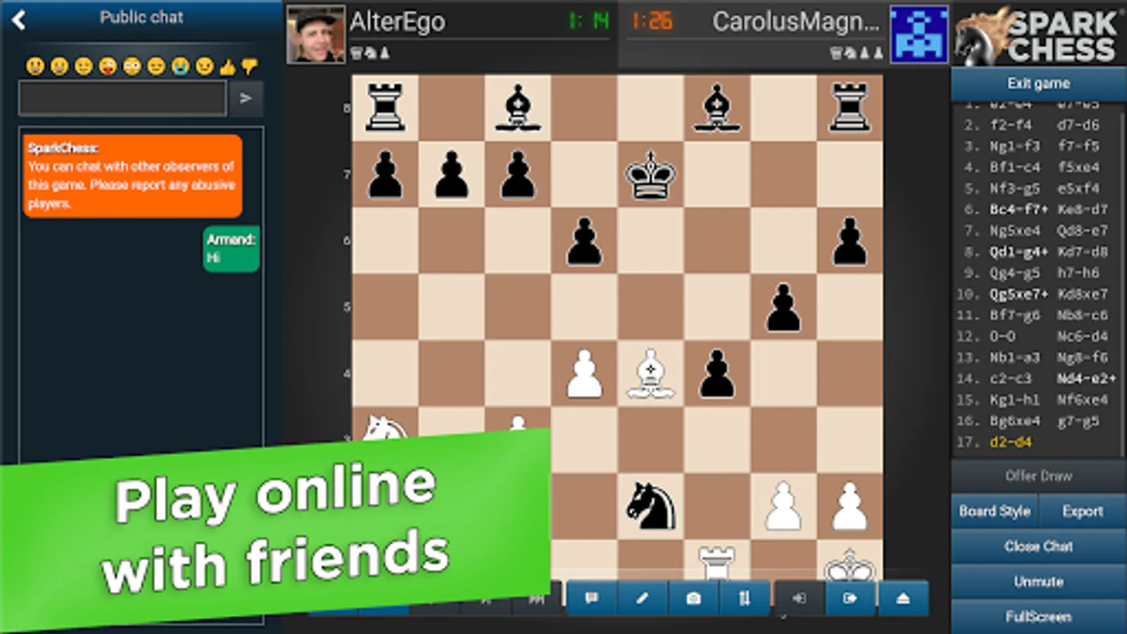 SparkChess is the only chess game that puts fun first. With a choice of boards, computer opponents and online play, it delivers a first-class experience that is as accessible to experts as it is to beginners, kids and anyone else who wants to discover how entertaining this ancient strategy game really is.