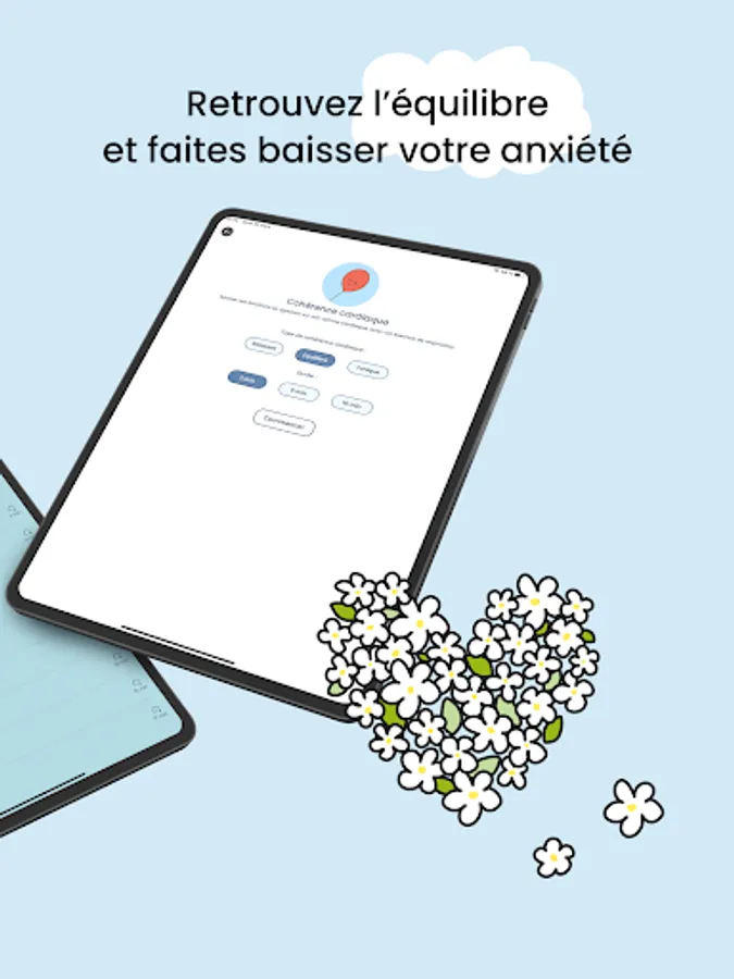 At your side throughout the day, our cardiac coherence tool allows you, in a few moments, to regain calm and reduce anxiety or stimulate you when you feel tired.