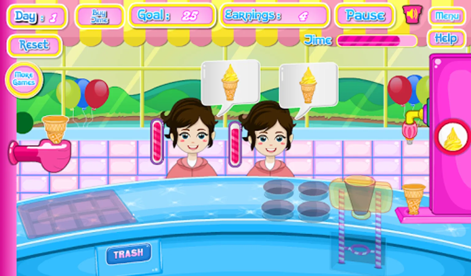 Now you can easily create ice creams like never before with the new Factory Mode of this Cooking Ice Cream Cone Cupcake game! In this mode you can create ice creams like a professional factory! Here you can collect the cone, fill it with a layer of cream, freeze it, fill it with yummy ice cream, add your toppings to it, sprinkle it with chocolate and send it out to your customers! Let yourself race the time and see if you can complete your ice cream target in time to collect all your money! With great fun to be had why not check out the Factory Mode with this fun cooking game today.