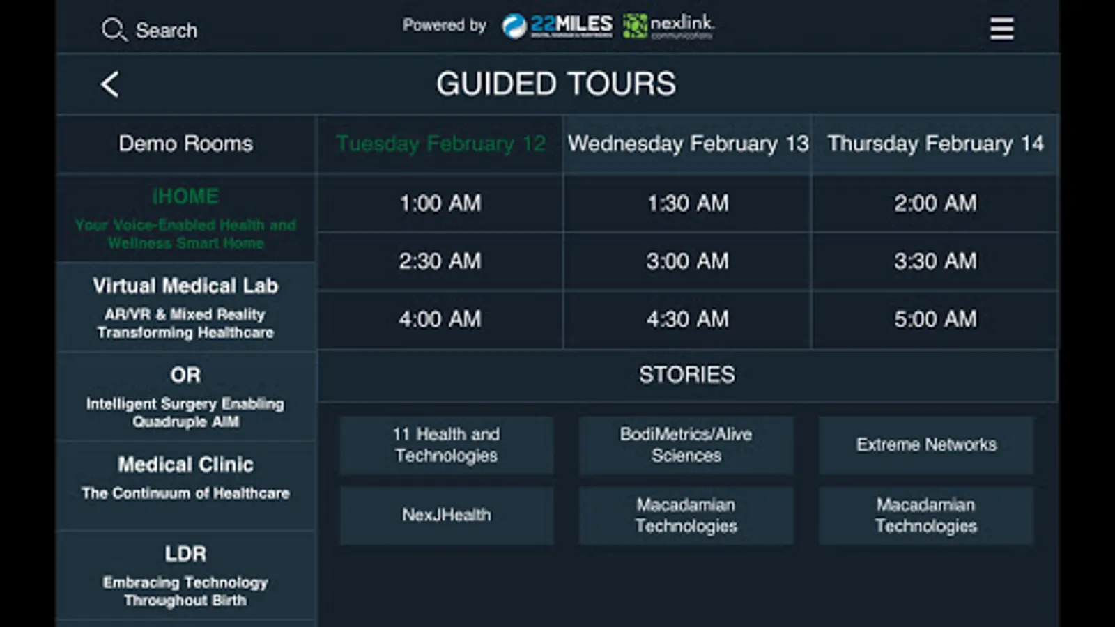 The IHP Wayfinding App is offered to enhance your experience in this Destination Pavilion at HIMSS. Make the most of your visit and find out what's on in the two Pavilion theaters, the schedule for guided demo room tours, stories you will see demonstrated in the tours and who has a kiosk in the Pavilion.