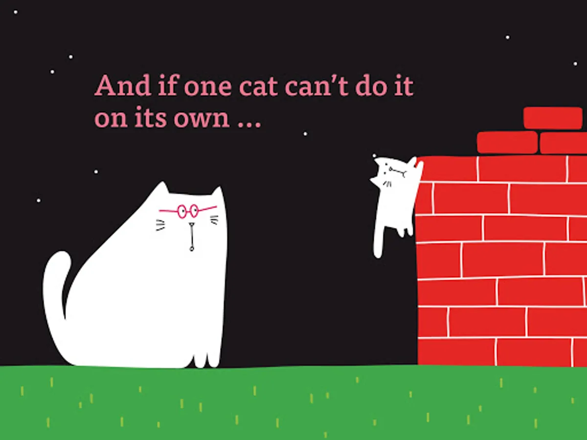 Big Cat and Little Cat are taking one of their nocturnal excursions, and will need to help each other if they want to get to their destination.