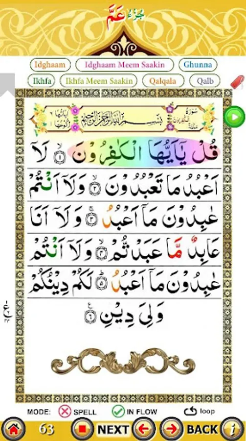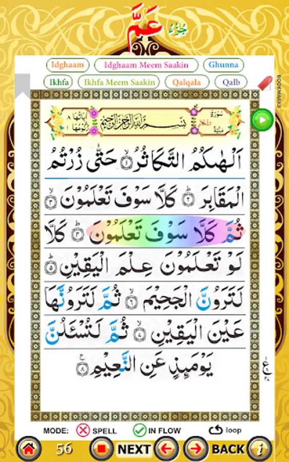 Learn "Para 30" without Hafiz. It has sound for each words. It is easy to use. Just click and listen and learn. It is Para 30 of the Holy Quran (Qur'an) 9 Lines Black / Color Coded Tajweed.