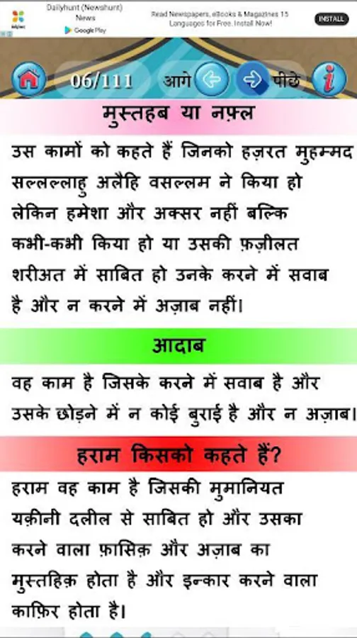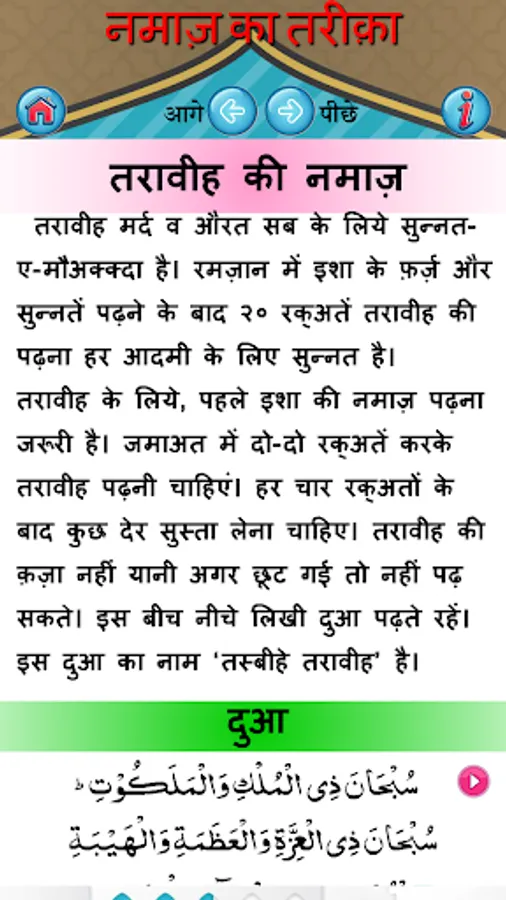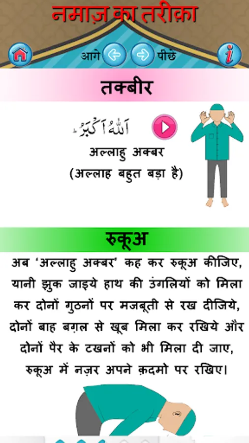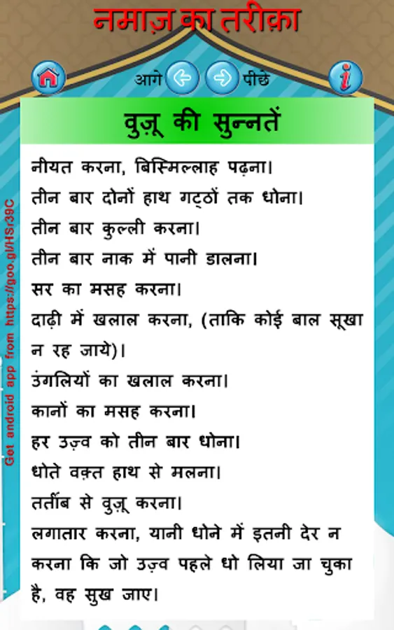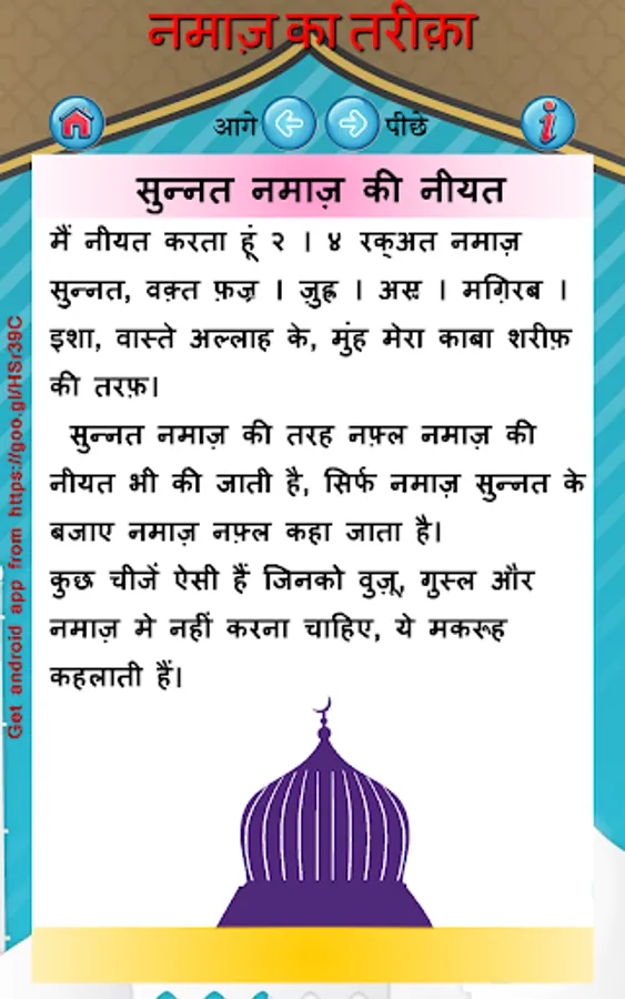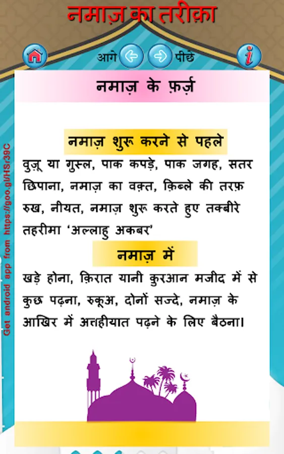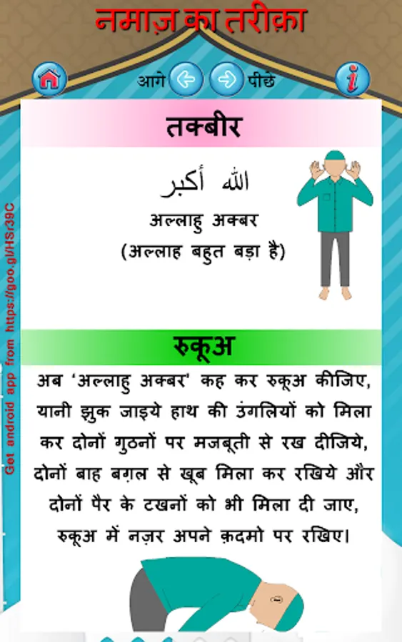 This application legitimately portrays the manners and right method for performing "Namaz". App Content is verified by Mr. Shadab Ansari, Hafiz Muhammad Nauman and Qari Muhammad Tahir Bashir. This is "namaz in hindi" app.