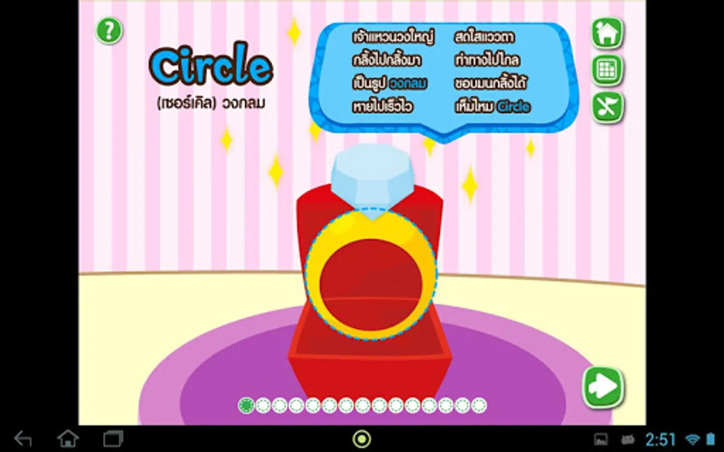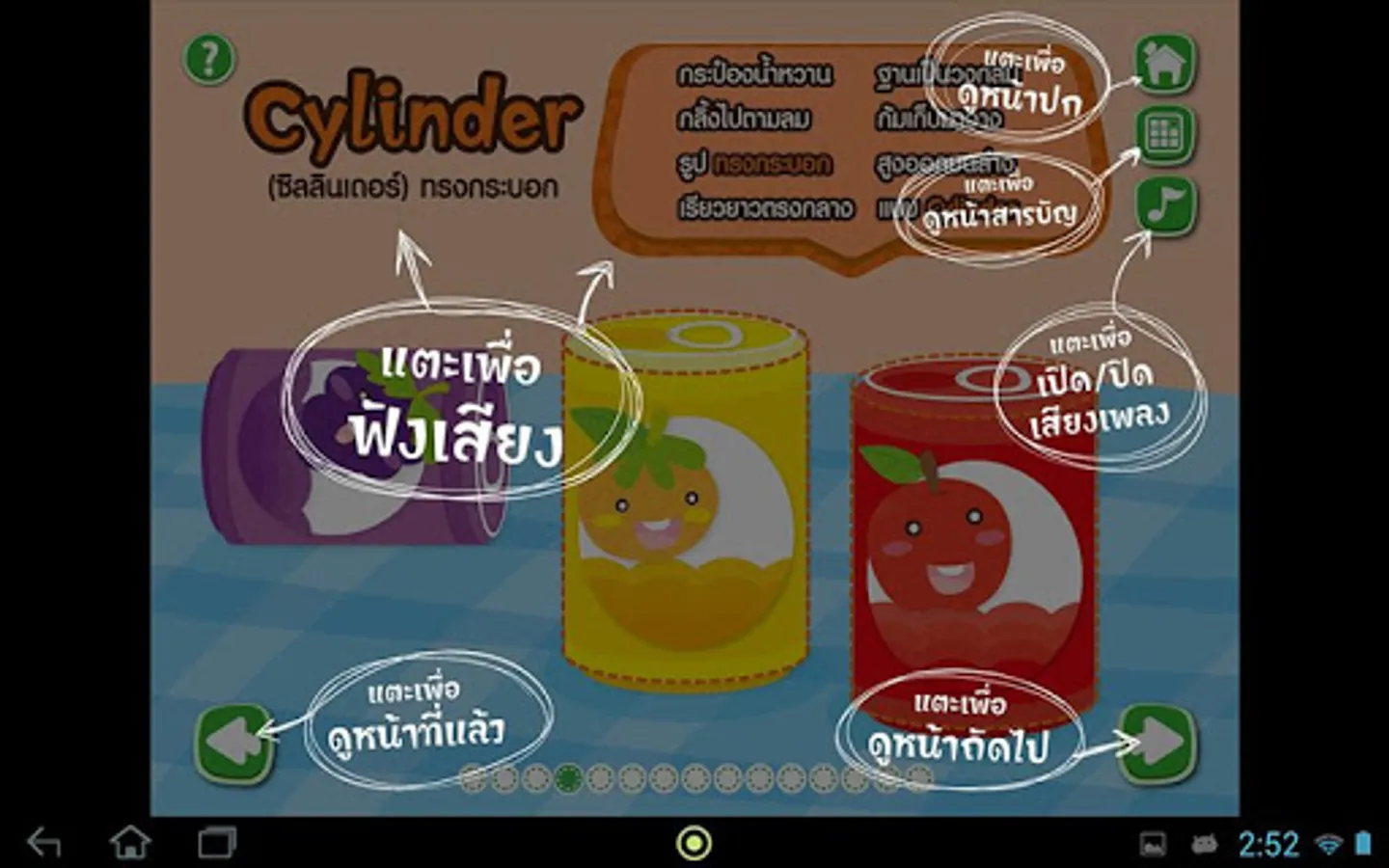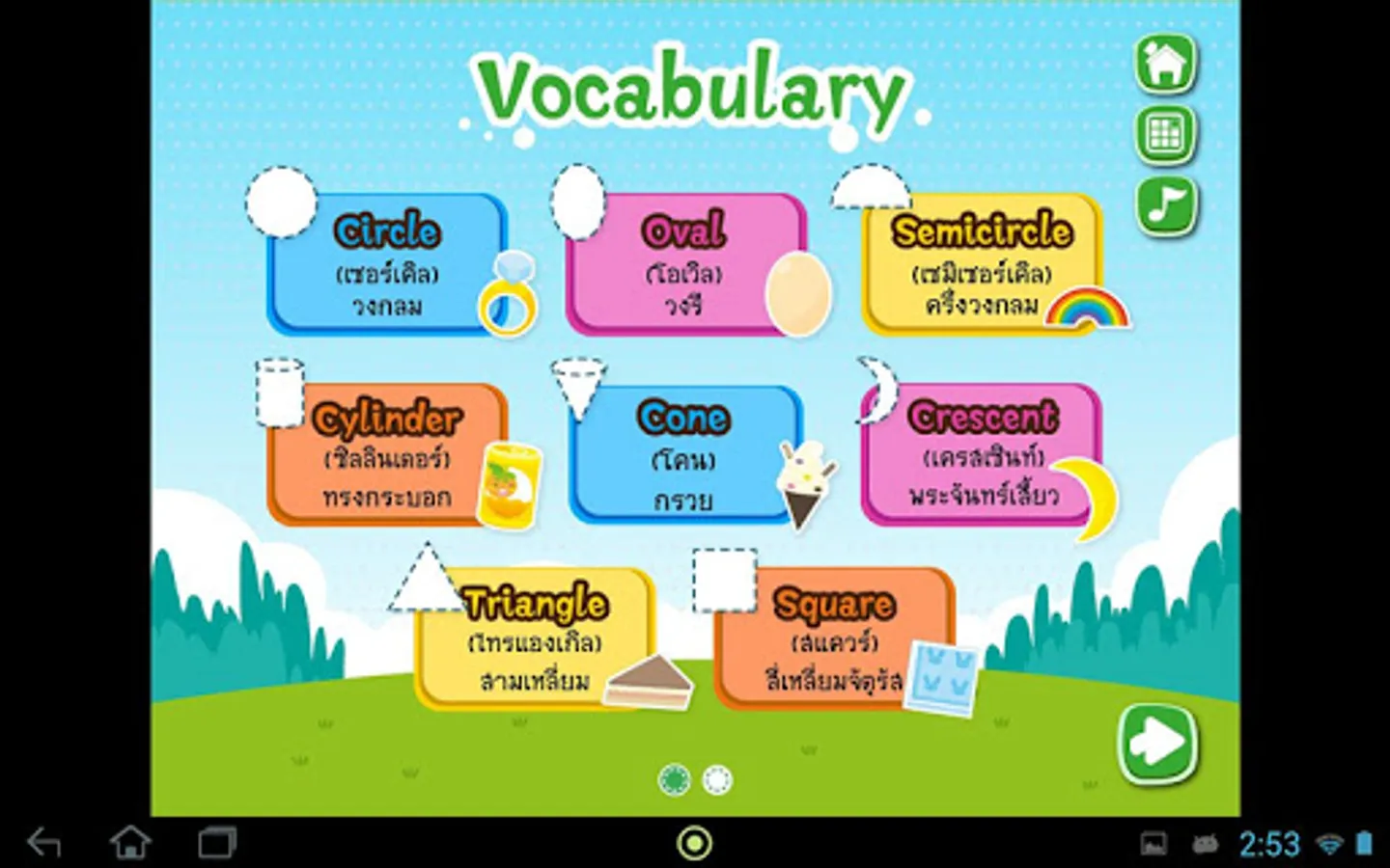Children will learn vocabulary about shapes and figures in both English and Thai through rhymes and cute illustrations. This style of learning appeals to children and makes them focus entirely on the content. It also helps children recognize the words precisely and greatly strengthen development of their EQ and IQ.