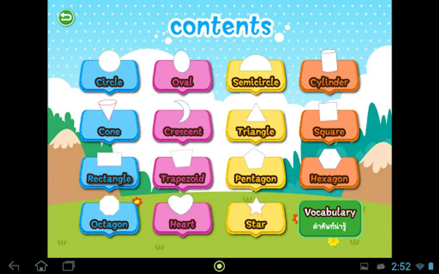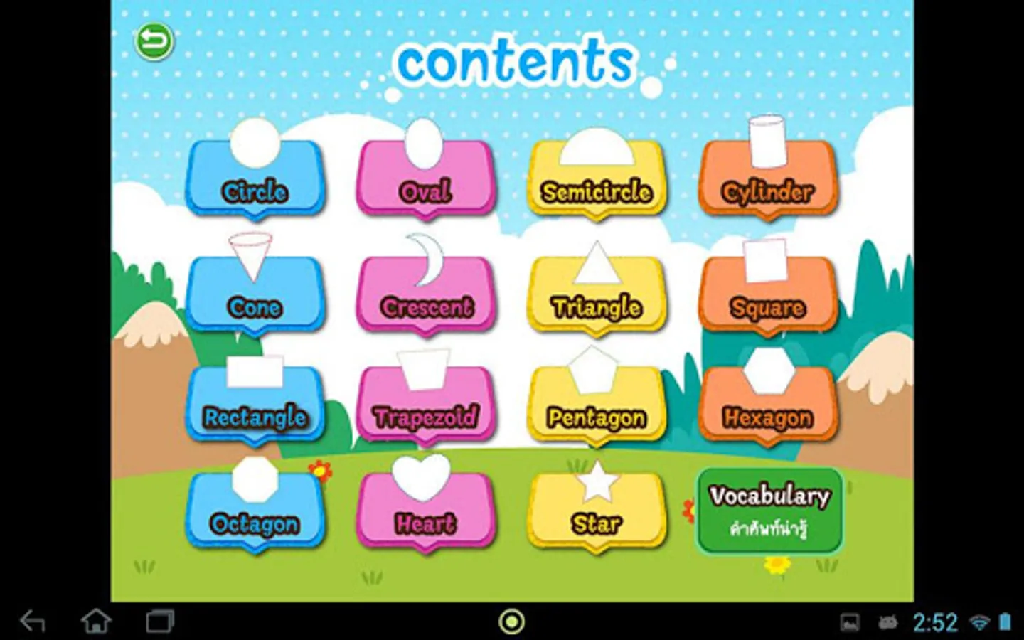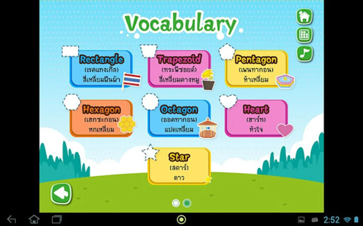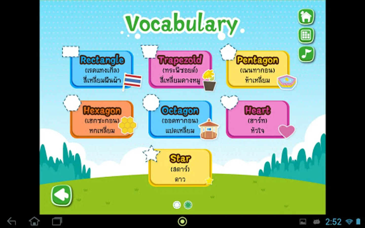 Children will learn vocabulary about shapes and figures in both English and Thai through rhymes and cute illustrations. This style of learning appeals to children and makes them focus entirely on the content. It also helps children recognize the words precisely and greatly strengthen development of their EQ and IQ.