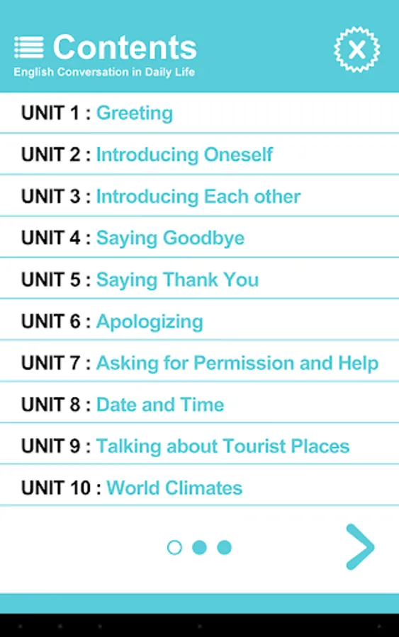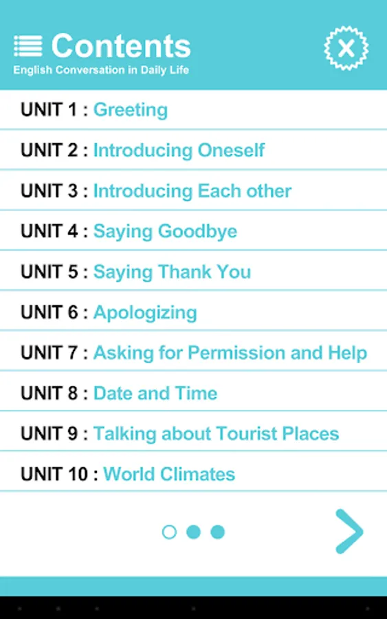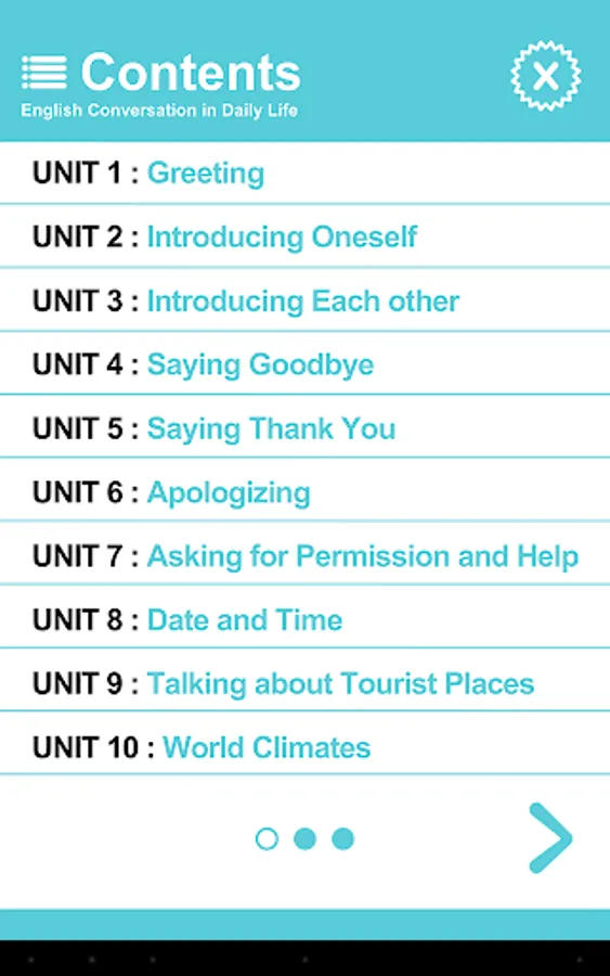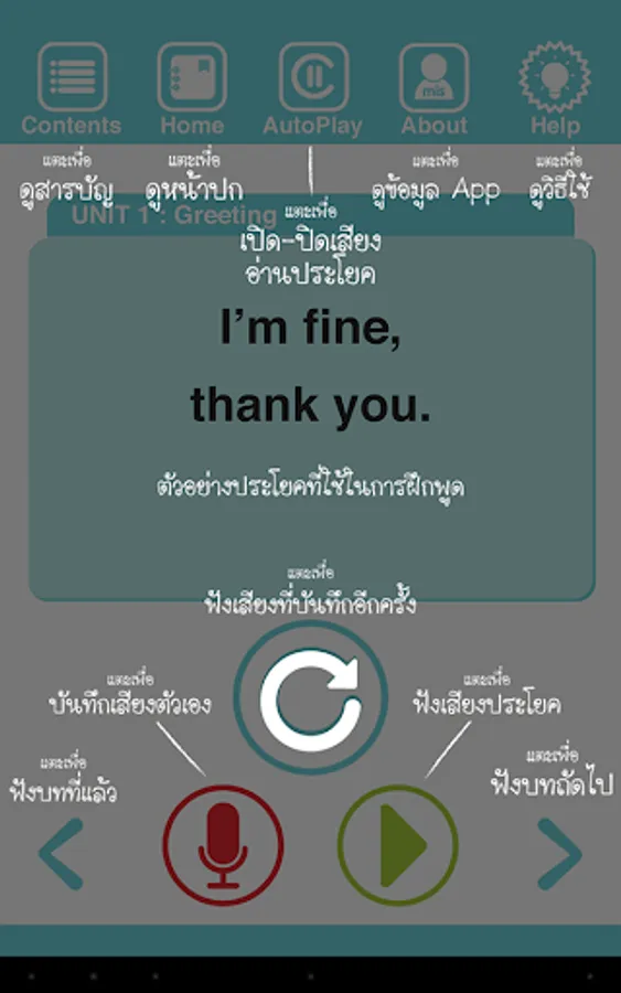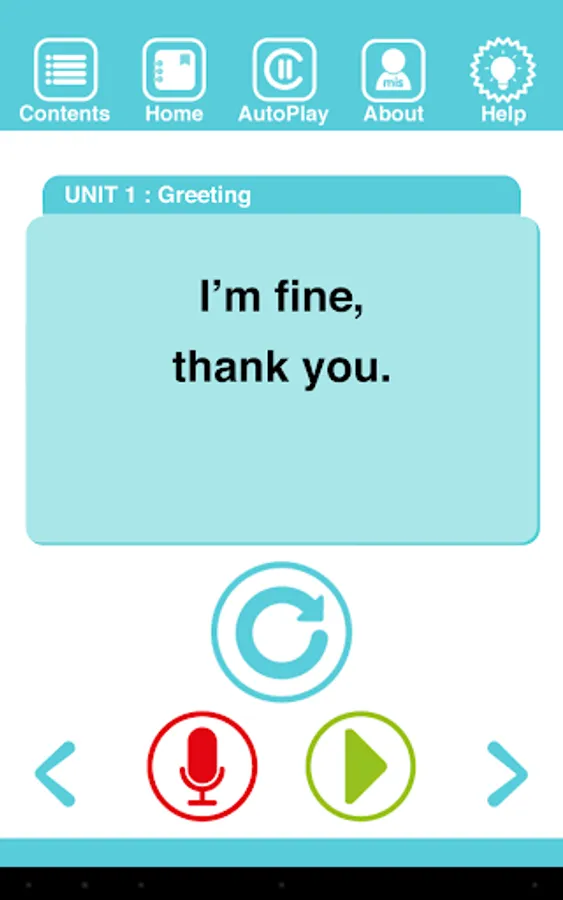 App for listening and pronunciation exercises from the book "English Conversation in Daily Life stutter do not speak English" speech focused on one sentence, to be used in real situations.