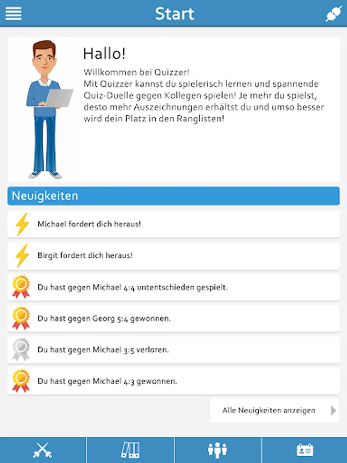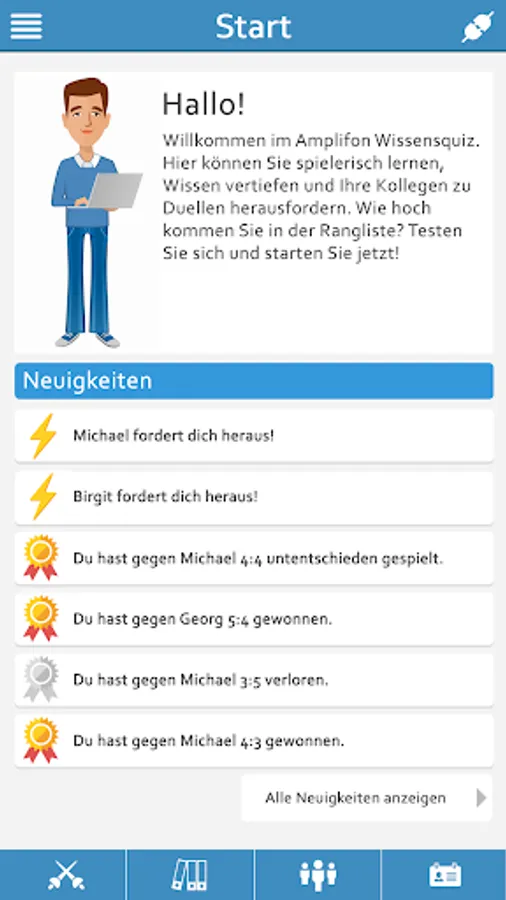 With the quiz you ask playfully duels with colleagues your knowledge to the test. With each won duel climb ever further towards top of the rankings.