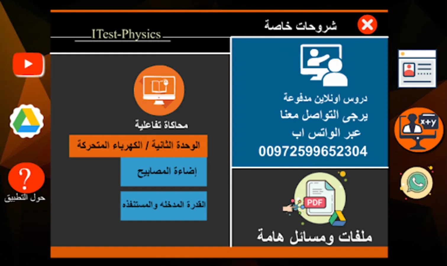 It is a revolutionary educational application dedicated to the subject of physics for the second scientific and industrial grade (Tawjihi Palestine and Jordan) that will help you to get acquainted with all the knowledge and skills that you need to be superior in the subject of physics. Using our app, you will be able to know your strengths and weaknesses in the field of Physics, which will help you decide which areas to focus on.