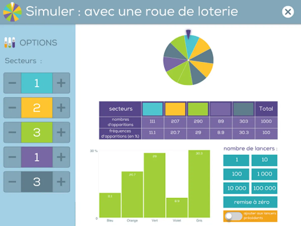 This part simulates many experiences, so as to introduce the concept of probability based on statistical frequencies.