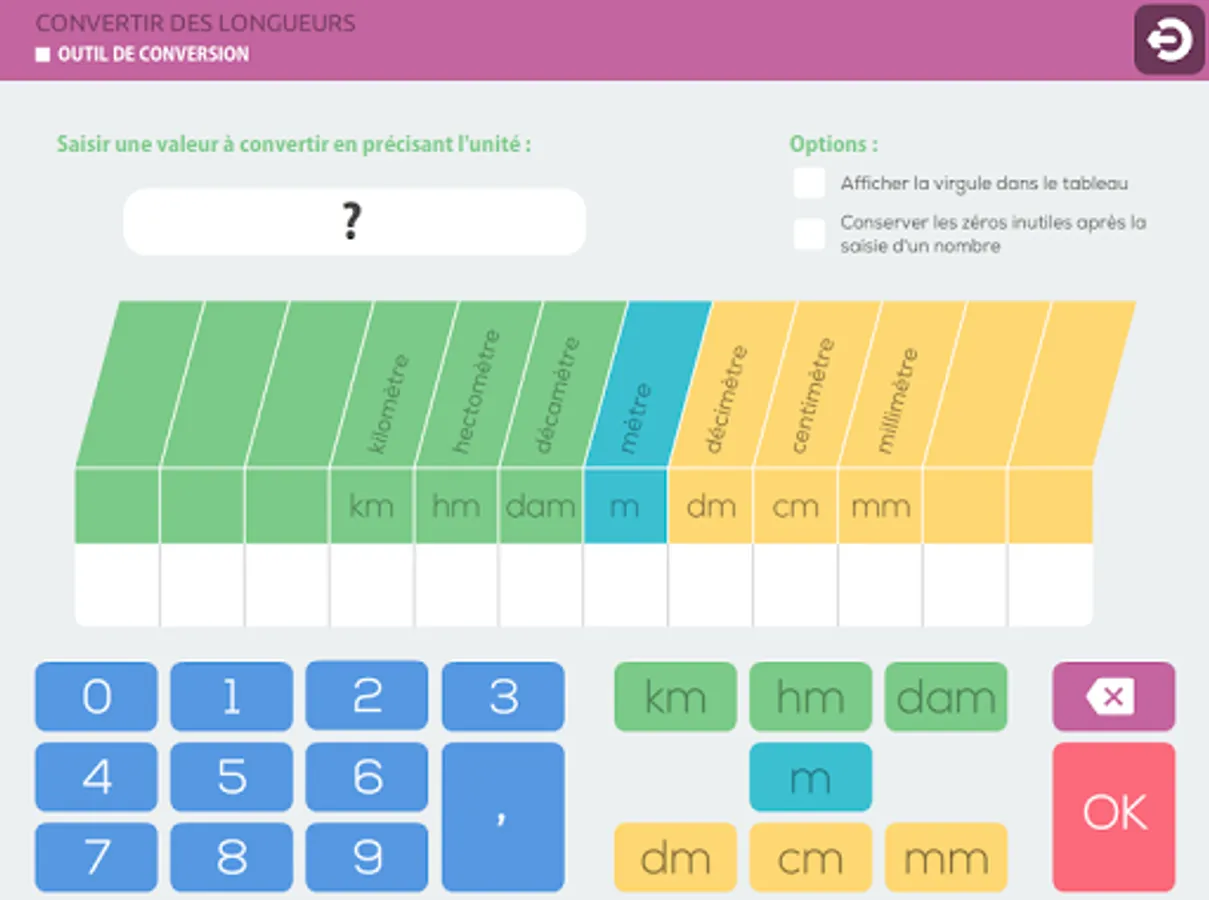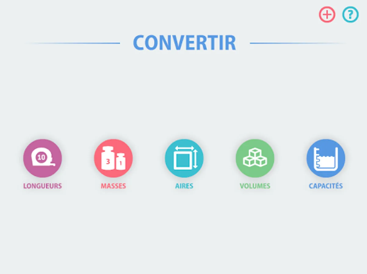 Description: Convert is an application for cycles 3 and 4: It allows to practice conversions of lengths, masses, areas, volumes and capacities.