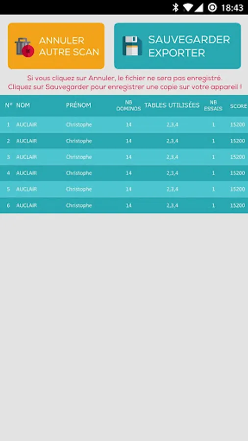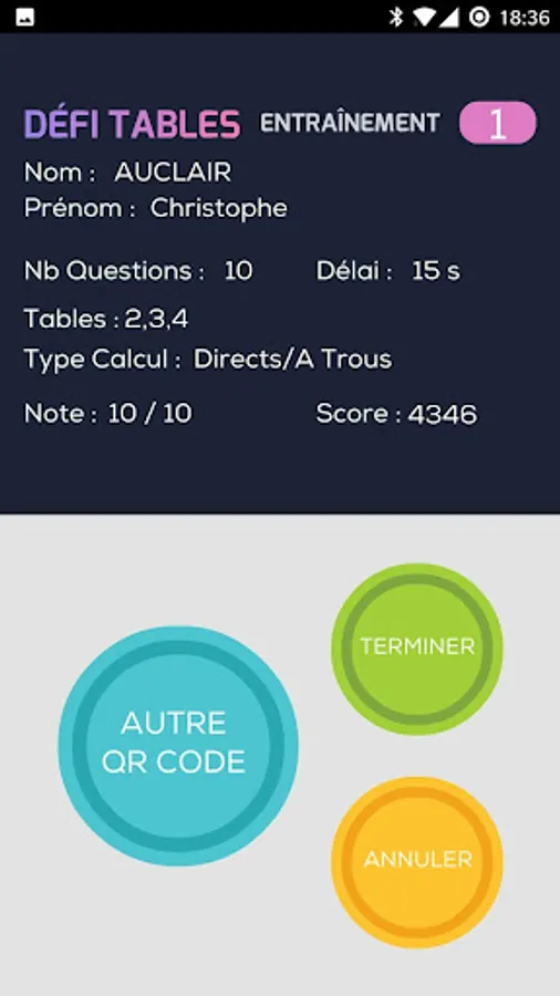 - The summary of the work done by the student appears. you can then scan another qr code, complete scans and go for export, or cancel the scan and return to the Index.