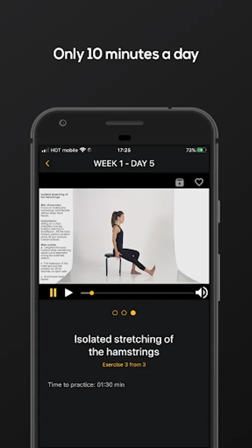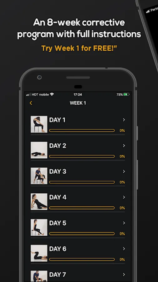 Every day you'll receive a list of outstanding exercises for improving ranges of movement, including full explanations!