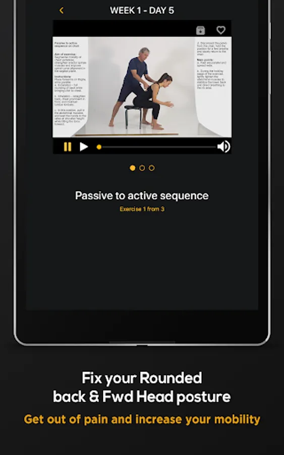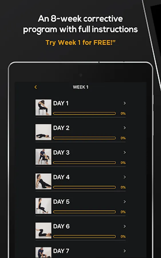 The app allows a progressive continual training program which, when performed continuously and consistently, step by step, day after day, will lead to the establishment of postural control!