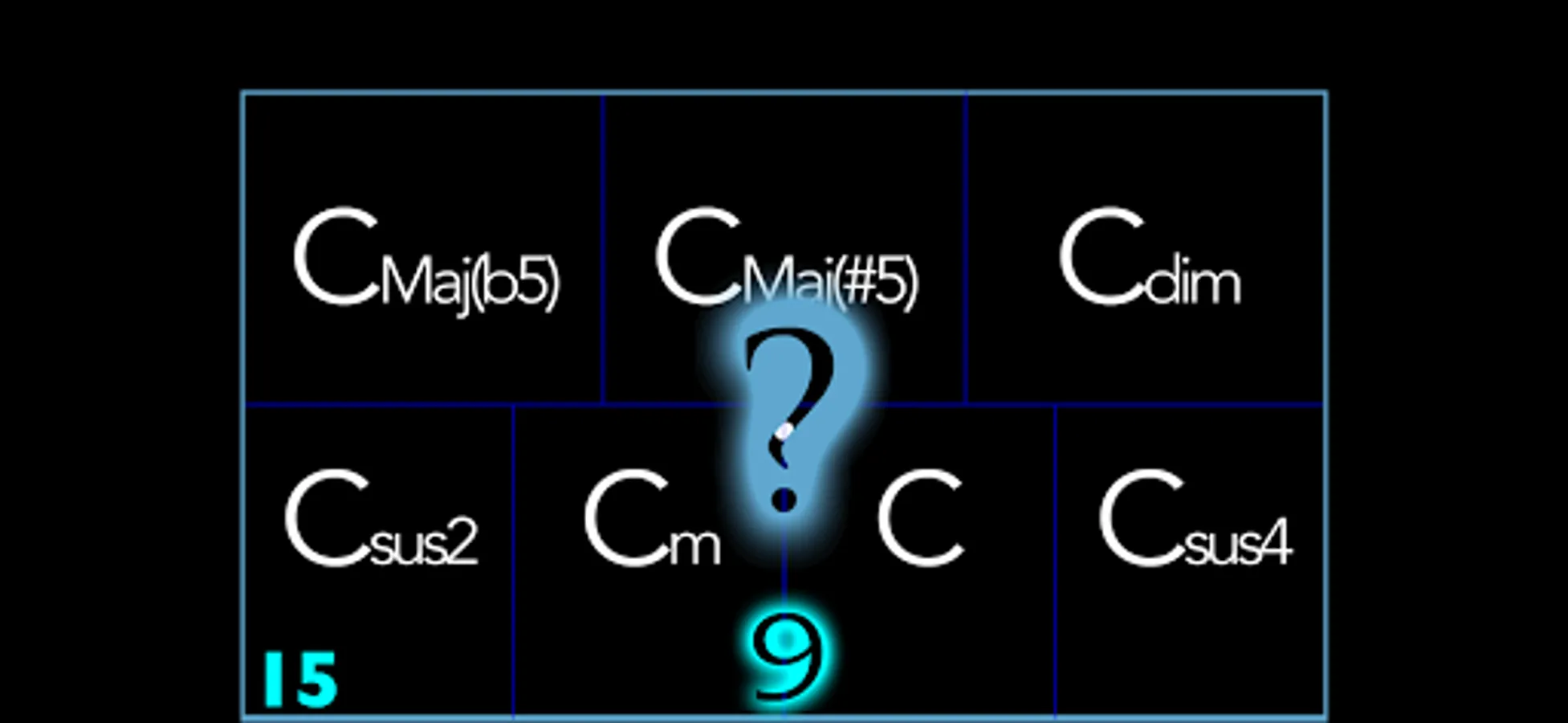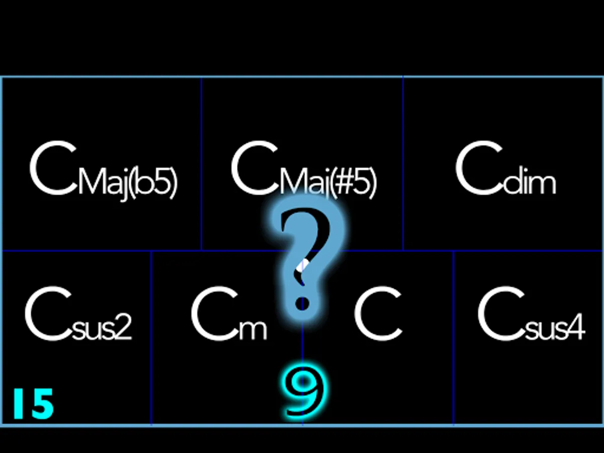 - On quizzes 11 to 15 you will listen the studied chords and you will see several choices expressed in the Anglo-Saxon music notation system. You have to click on the choice that corresponds to the chord that you heard.