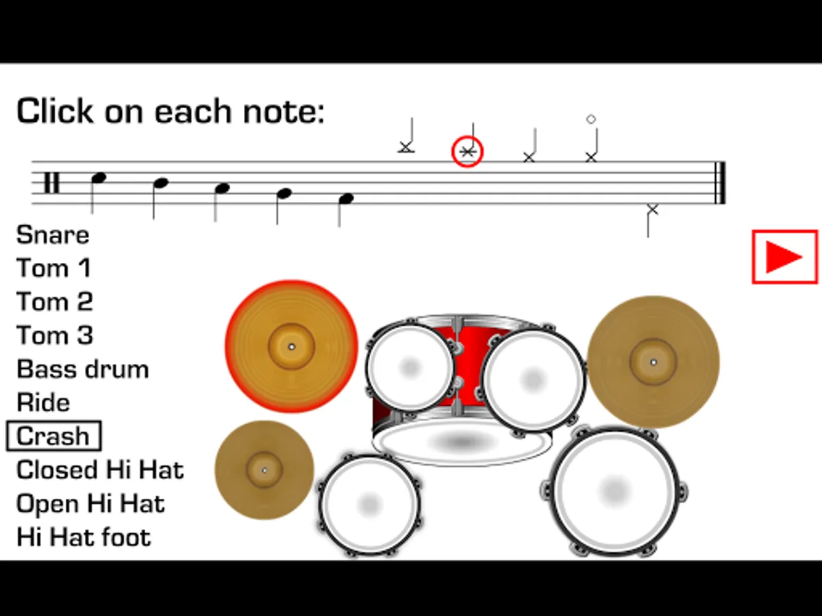 When the exercise begins you have to click on each part of the Drum Set that corresponds to that which is written. This has to be done at first sight in real time.