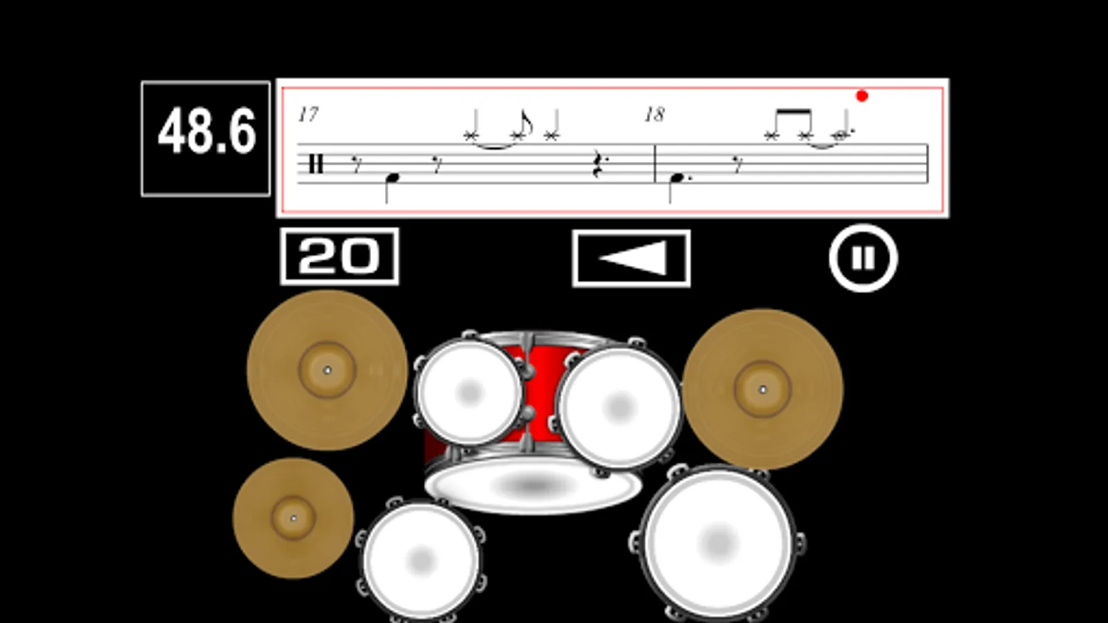 On each lesson you will see a sheet music and you will listen what is written on it. You will see animations of the beats, the notes on the staff and the parts of the Drum Set. This allows you to relate what is written on a score with that which is played on the Drum Set.