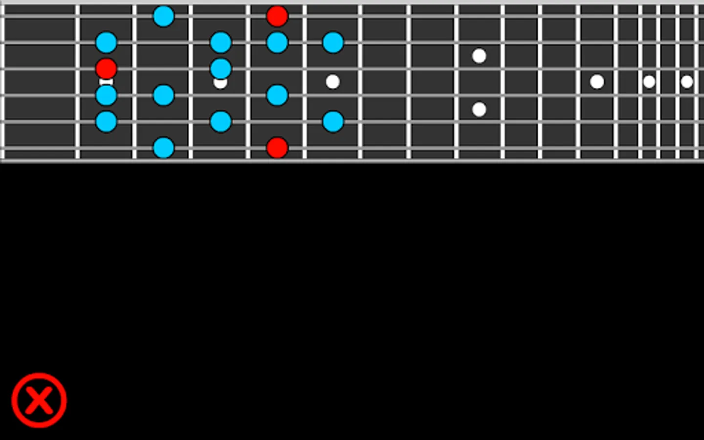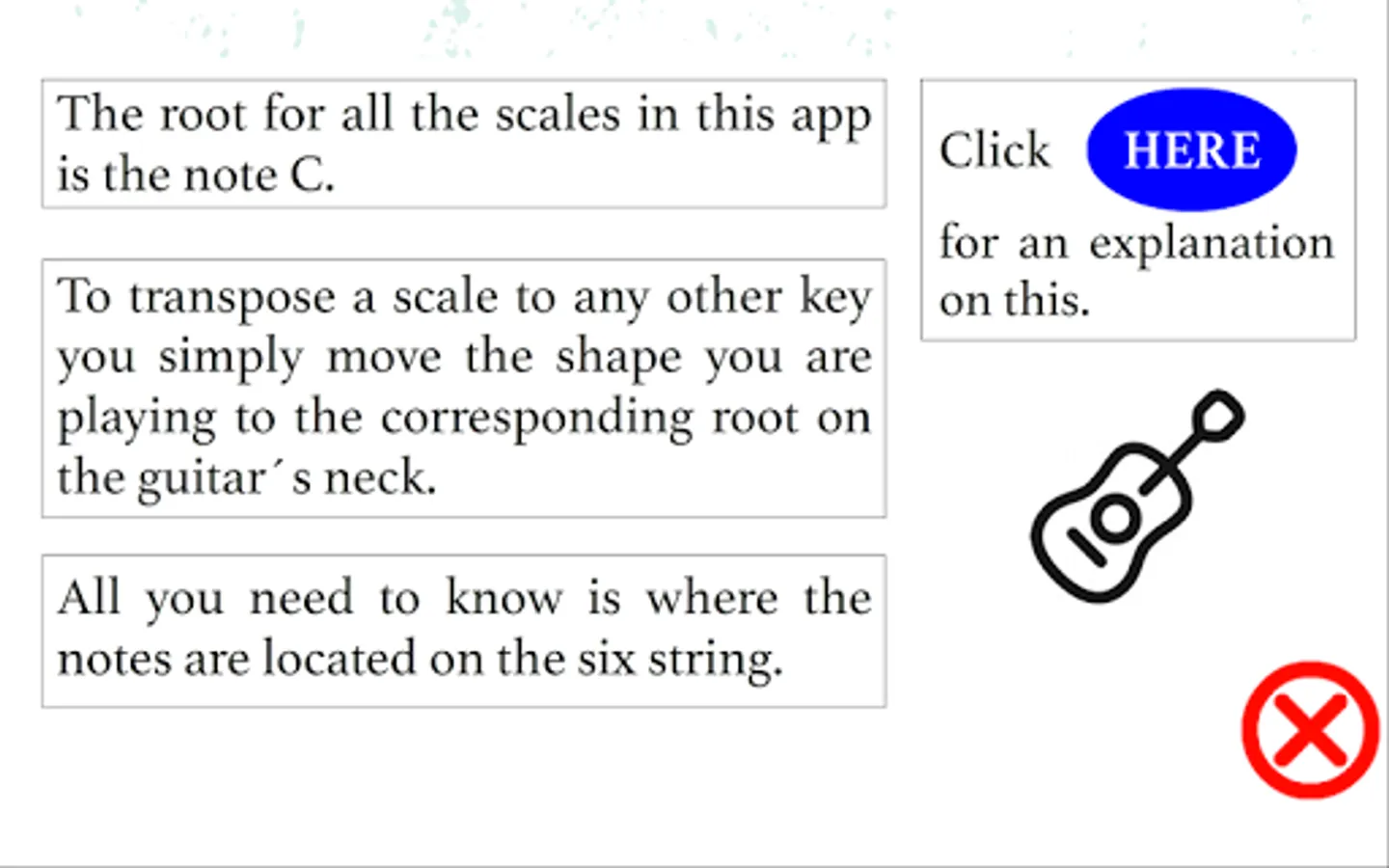 - It shows the notes of each scale on a virtual Guitar so you can play it.
