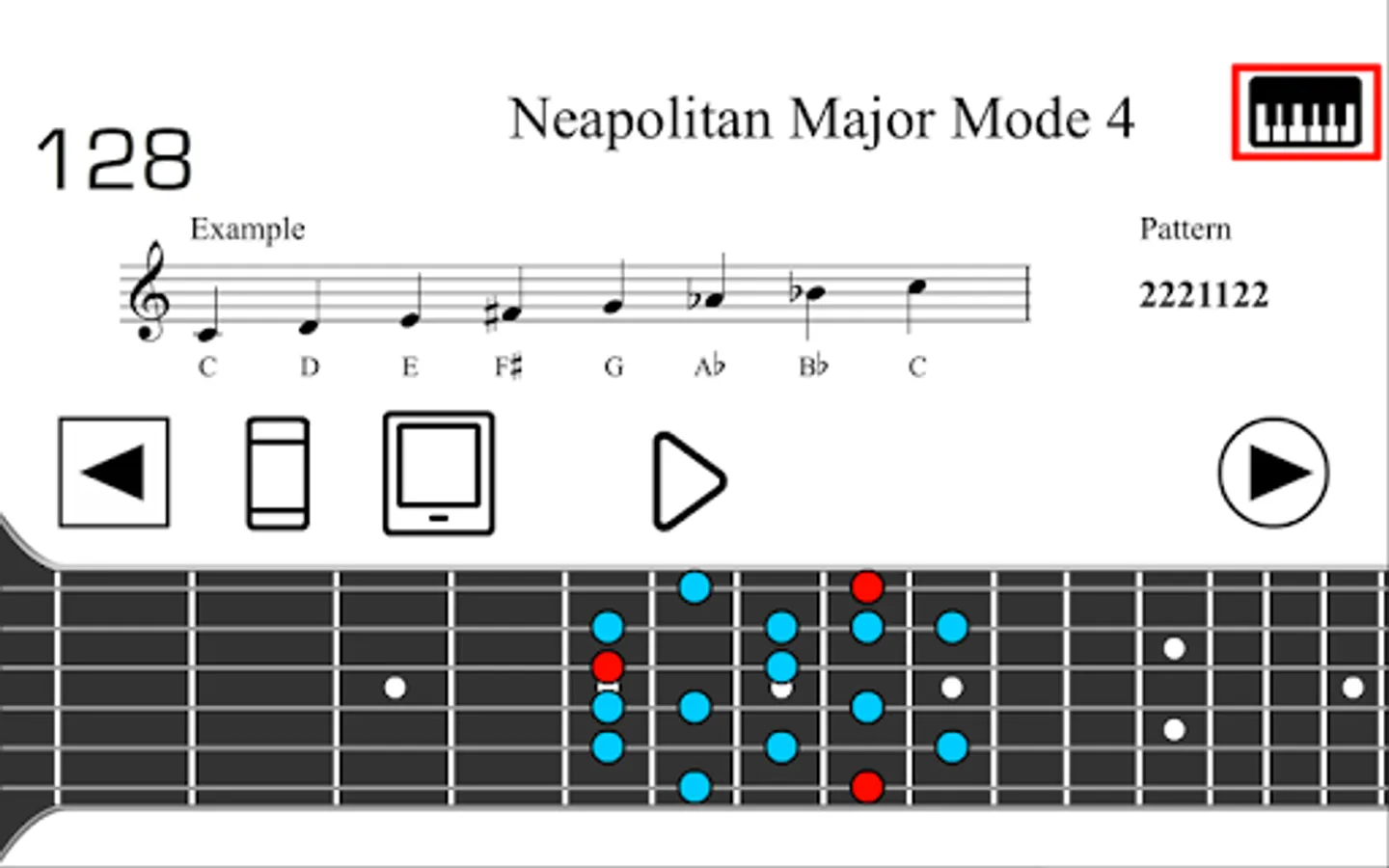 - It shows the notes of each scale on a virtual Piano / Keyboard so you can play it.