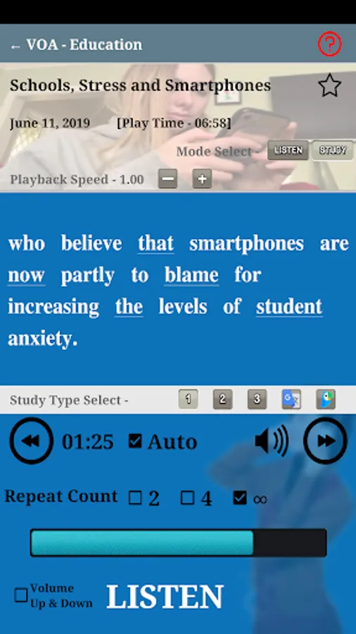 Loop audio tracks – listen to the articles and conversations as many time you want