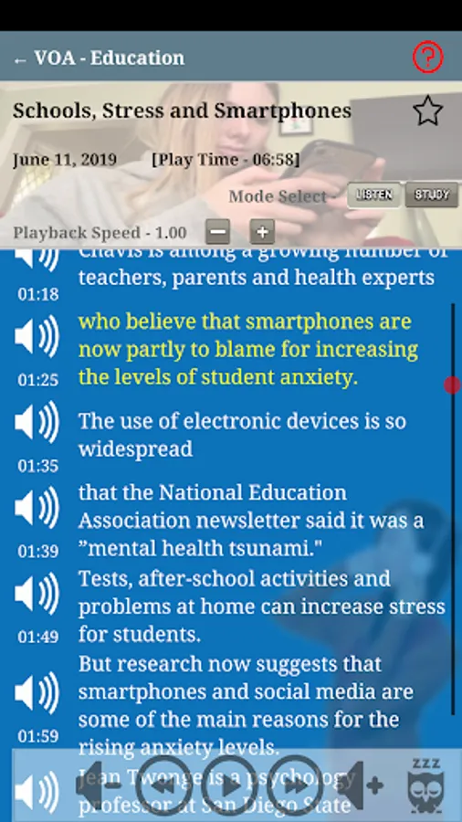 Two useful modes : Listen only or Study