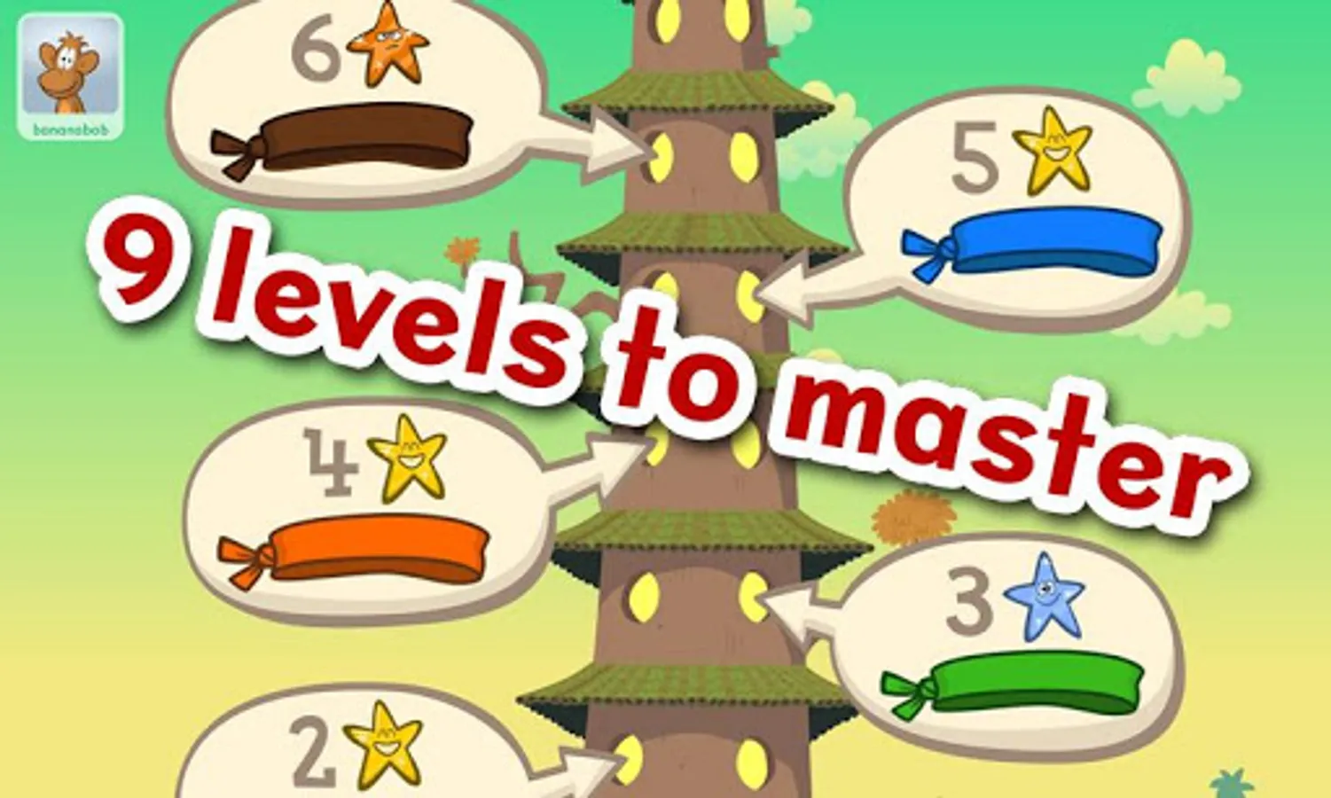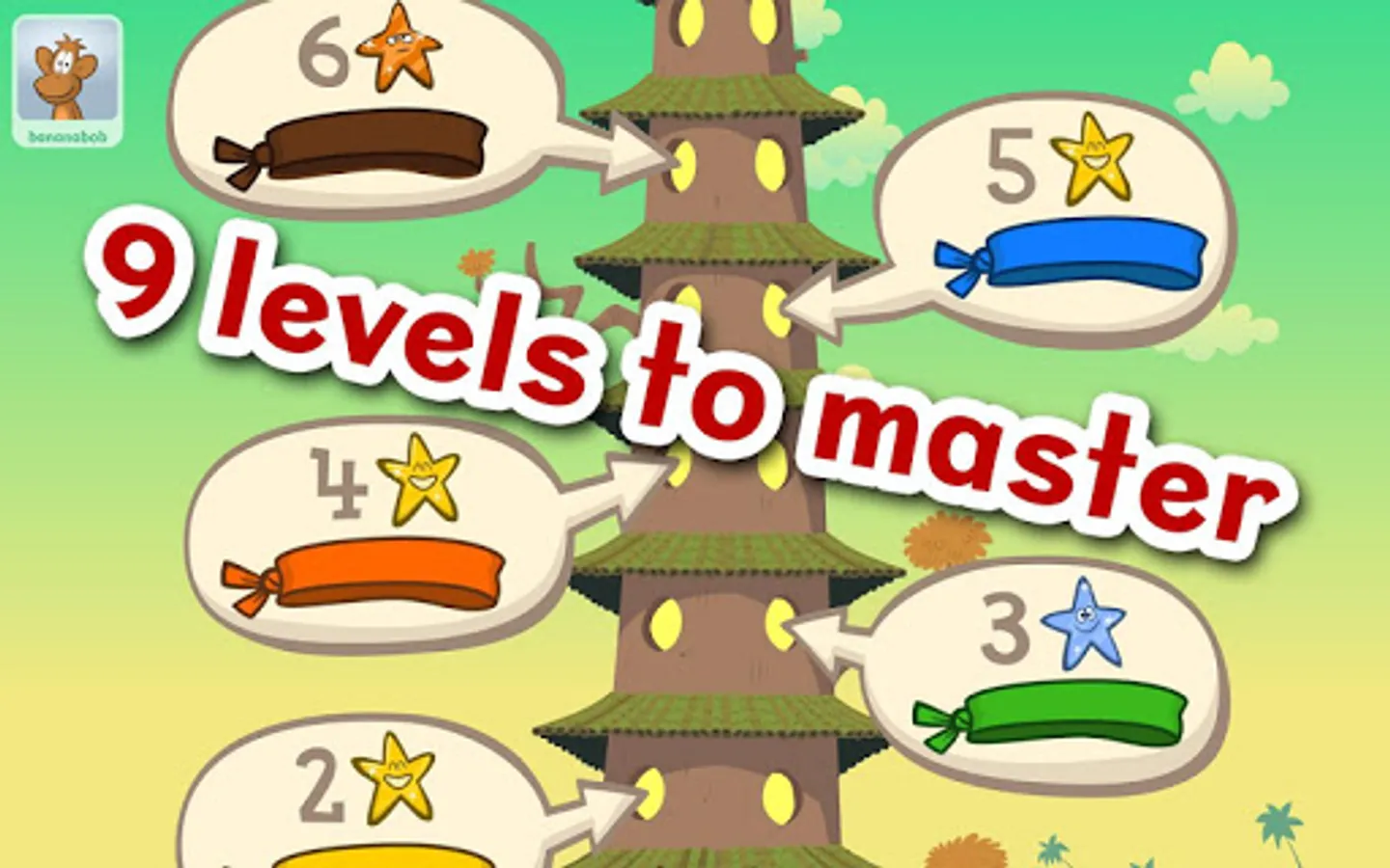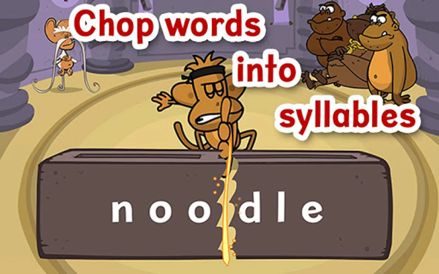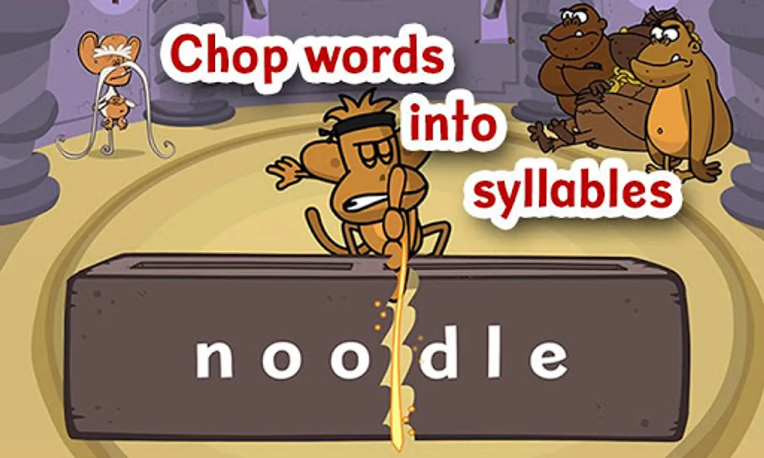 Enter the Chimp Fu tower and begin your training. Each level begins with a lesson that explains a different type of syllable.