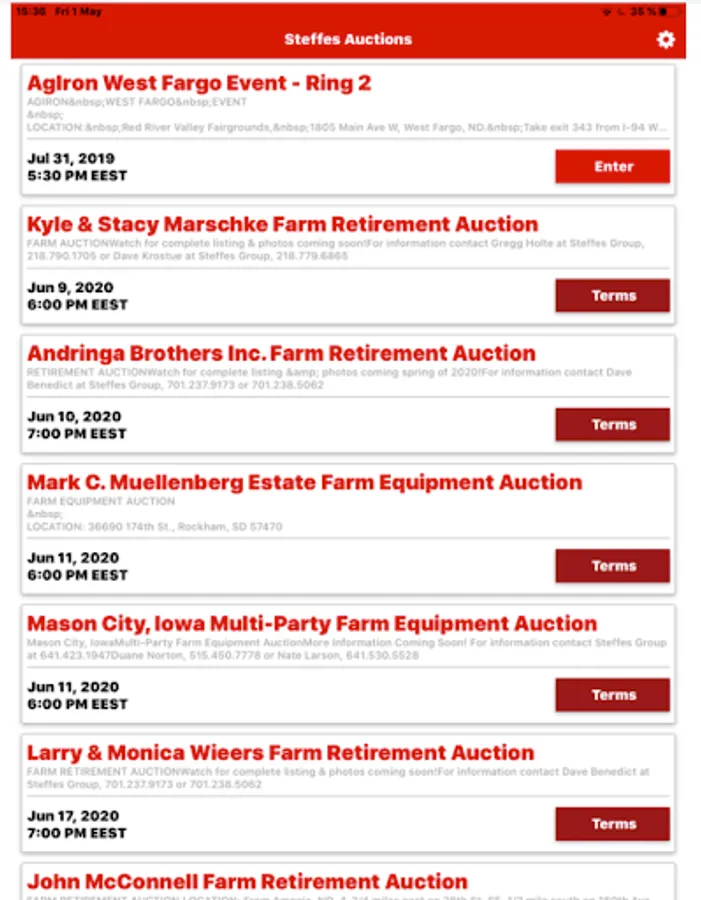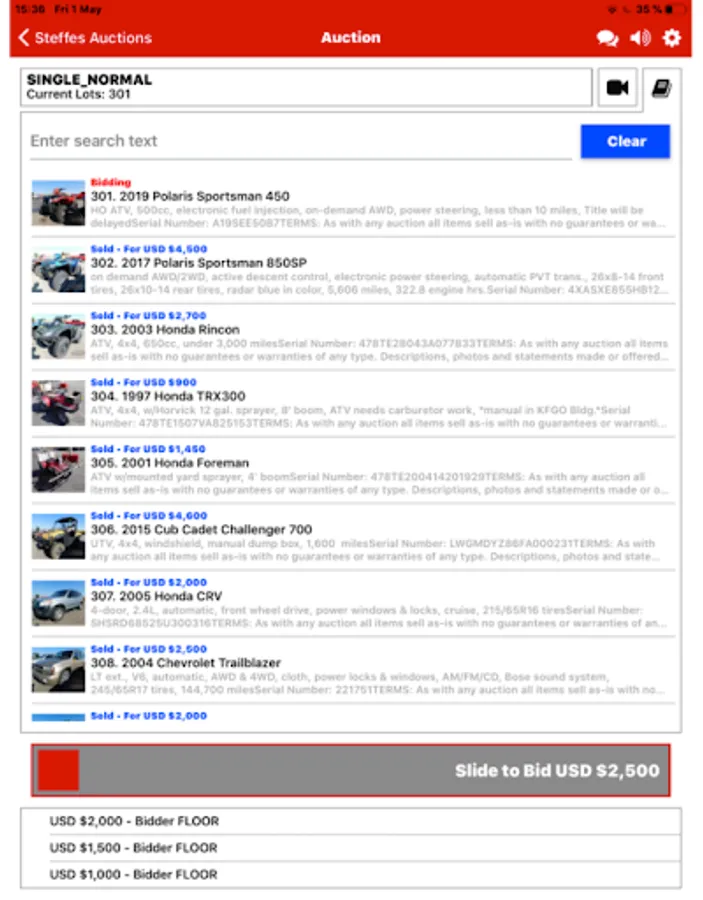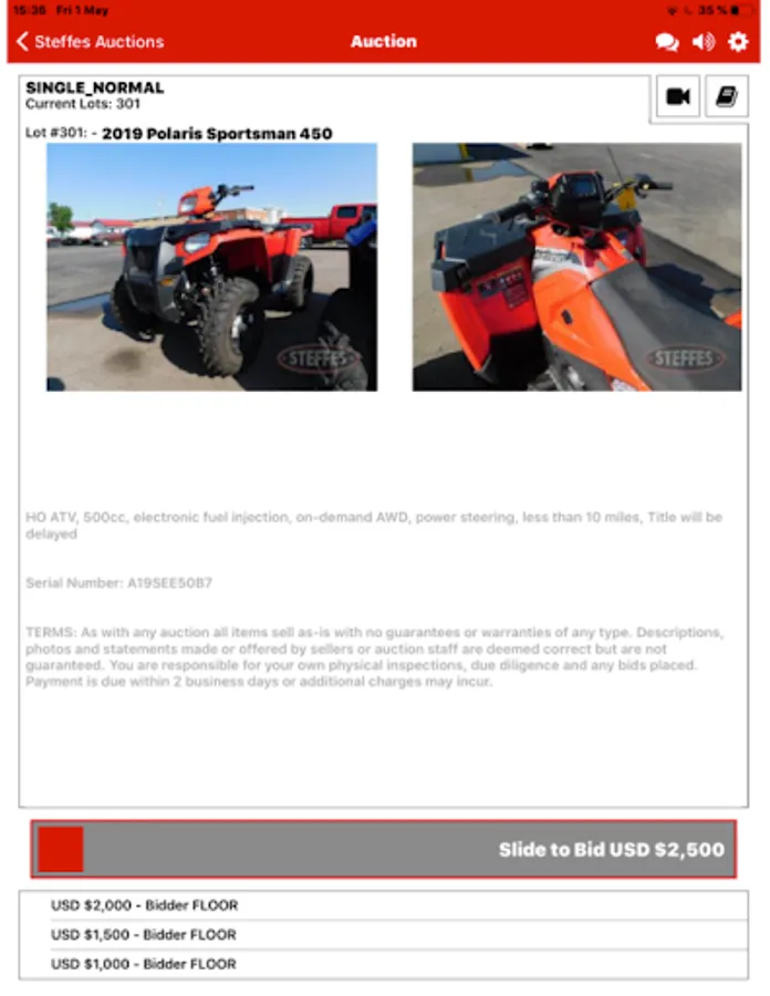 Please note: this app is for bidding during Live On-Site Auctions ONLY. Auction webcasts will open approximately 30 minutes before the live auction begins. Prior to that, all bids must be placed via SteffesGroup.com